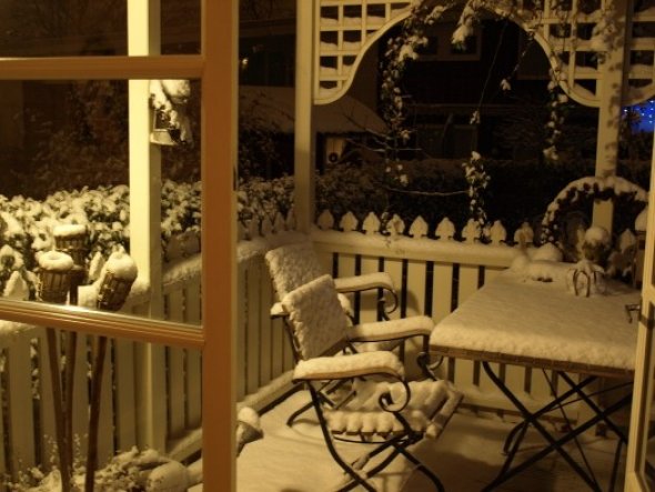 Ein schöner Ausblick, bietet unsere Terasse in weiß. Hoffentlich bleibt der Schnee bis Weihnachten.