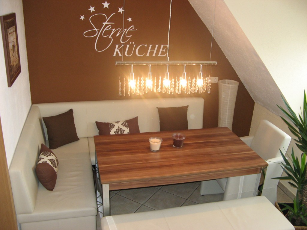 Unsere Wohnküche ist ein Sehr gemütlicher Teil von unserer Wohnung liegt denk ich auch den Warmen Farben find das für die Küche sehr Passend. Wir köönen viel Besuch empfangen und Gemütlich Kaffee Trinken