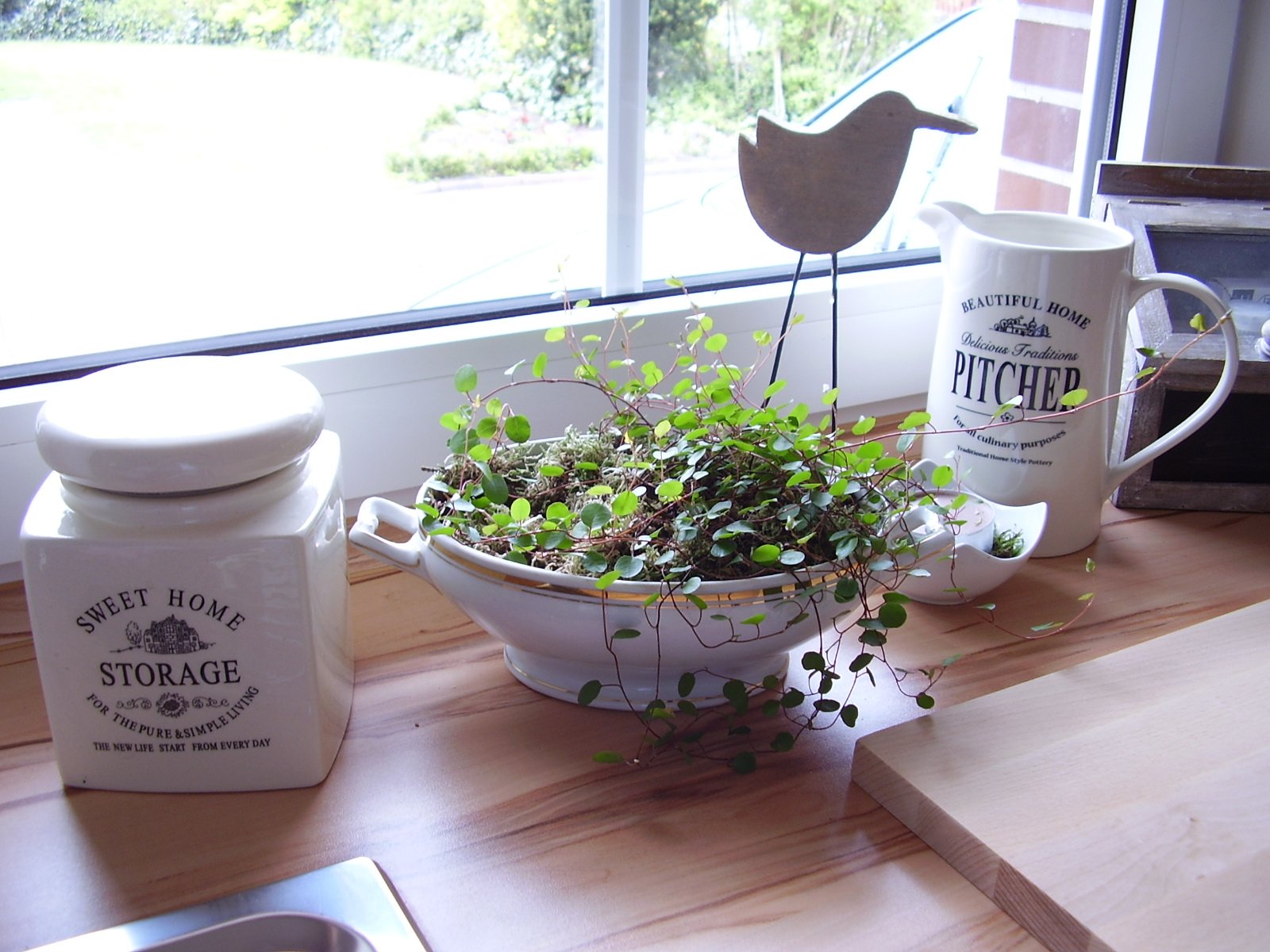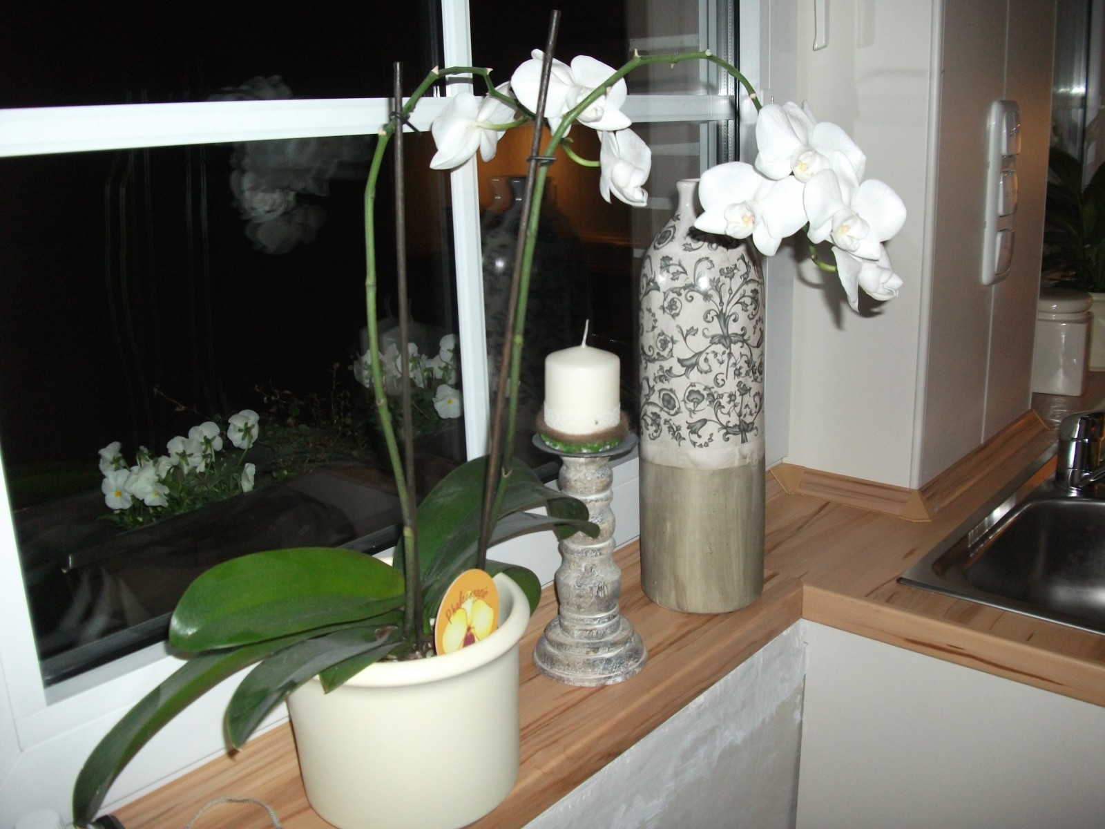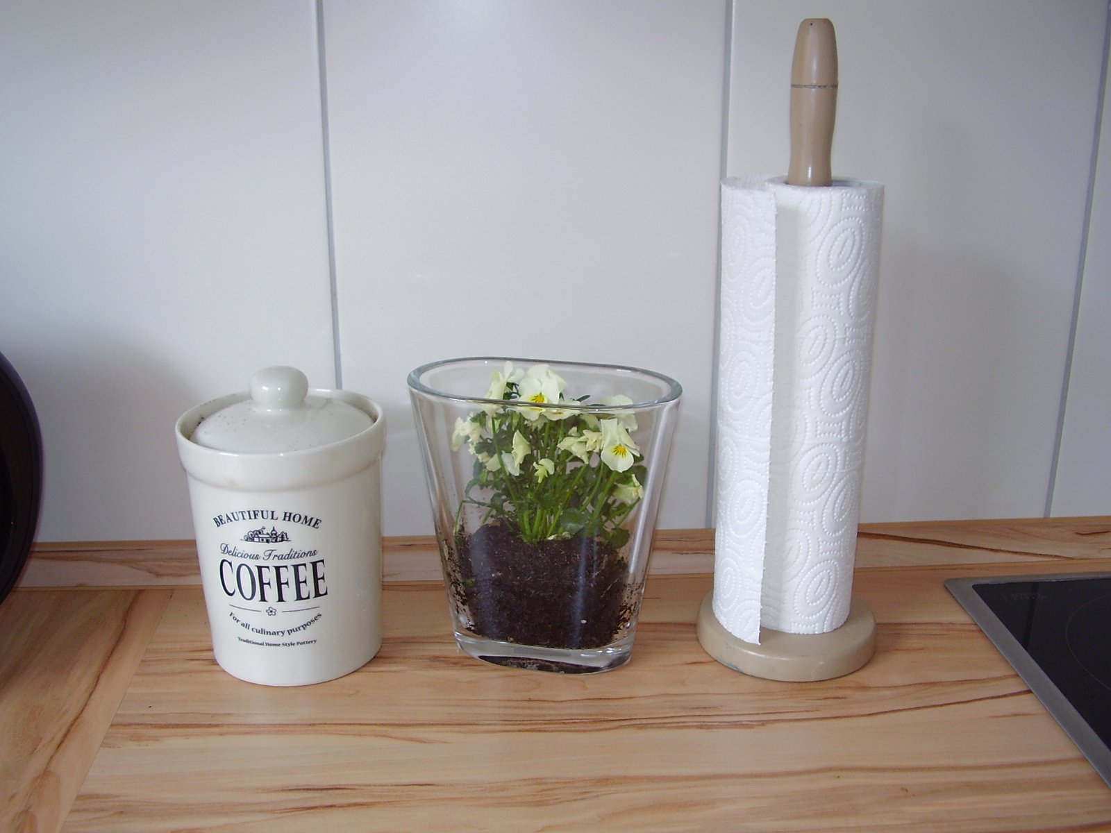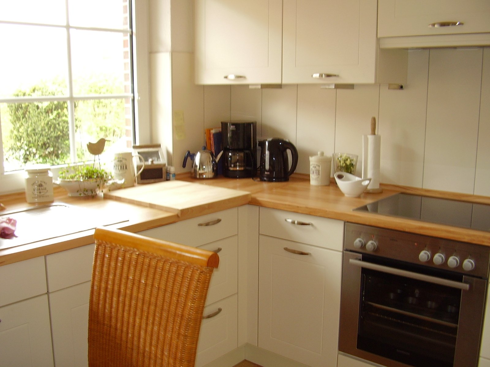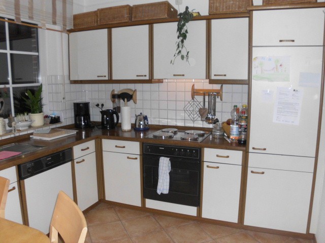 12.823Hallo, nach langem warten ist sie endlich da...meine neue Küche... Die Fronten sind in Magnolie und die Arbeitsplatte ist Kernholz.Die Wände wurden neu gestrichen,der Fliesenspiegel ist neu und es gab neue elektrische Rollos,weil ich die Bänder so schrecklich fand.Die Deko ist erstmal die Alte,bis ich was schönes finde. Es fehlt noch unsere Tischplatte,die wird neu lackiert,damit sie zum Rest paßt,neue Stühle hätte ich auch gerne,am liebsten solche Loomstühle,aber das muß noch warten. Das ganze hat nun fast 14 Tage gedauert,aber für mich hat es sich gelohnt....