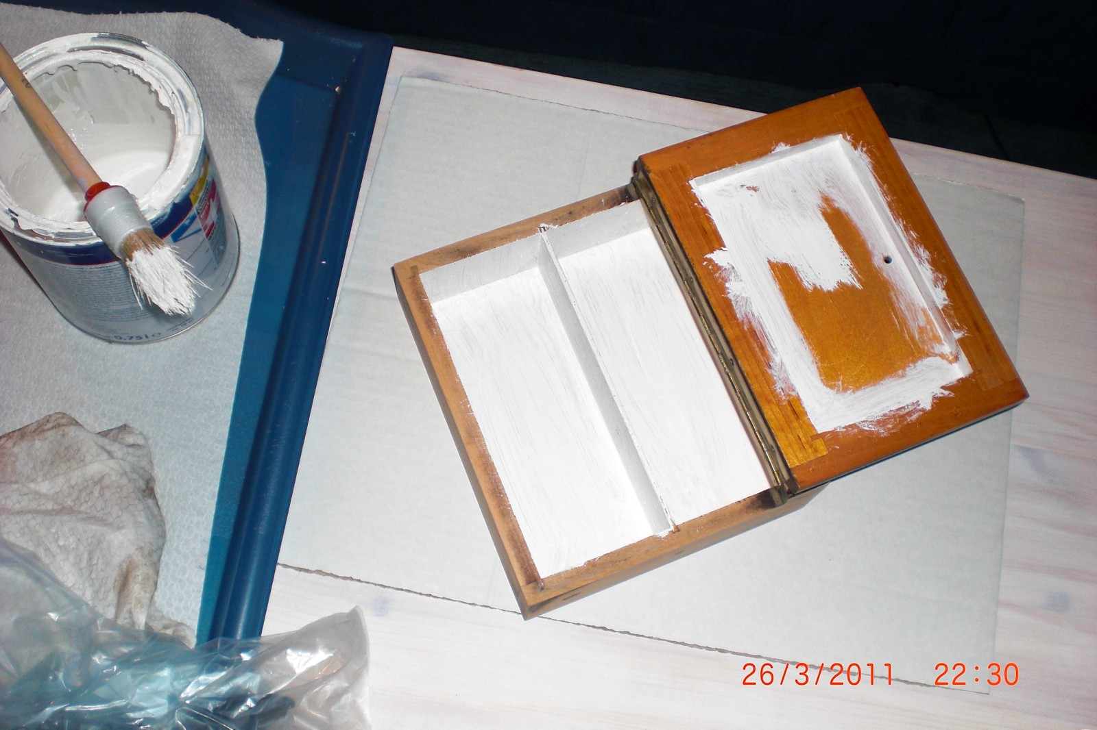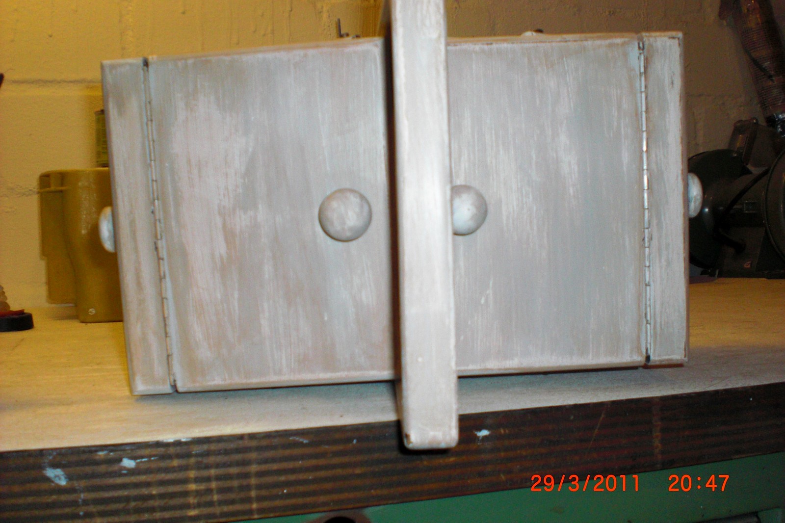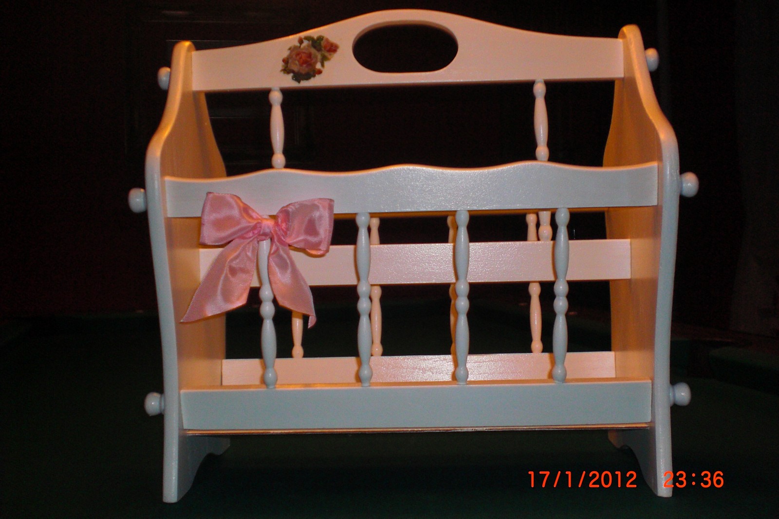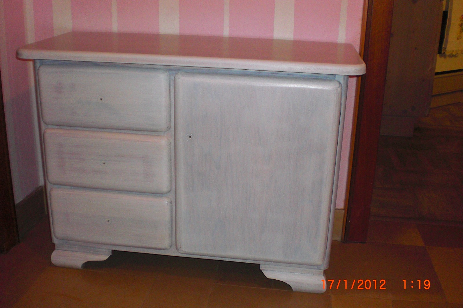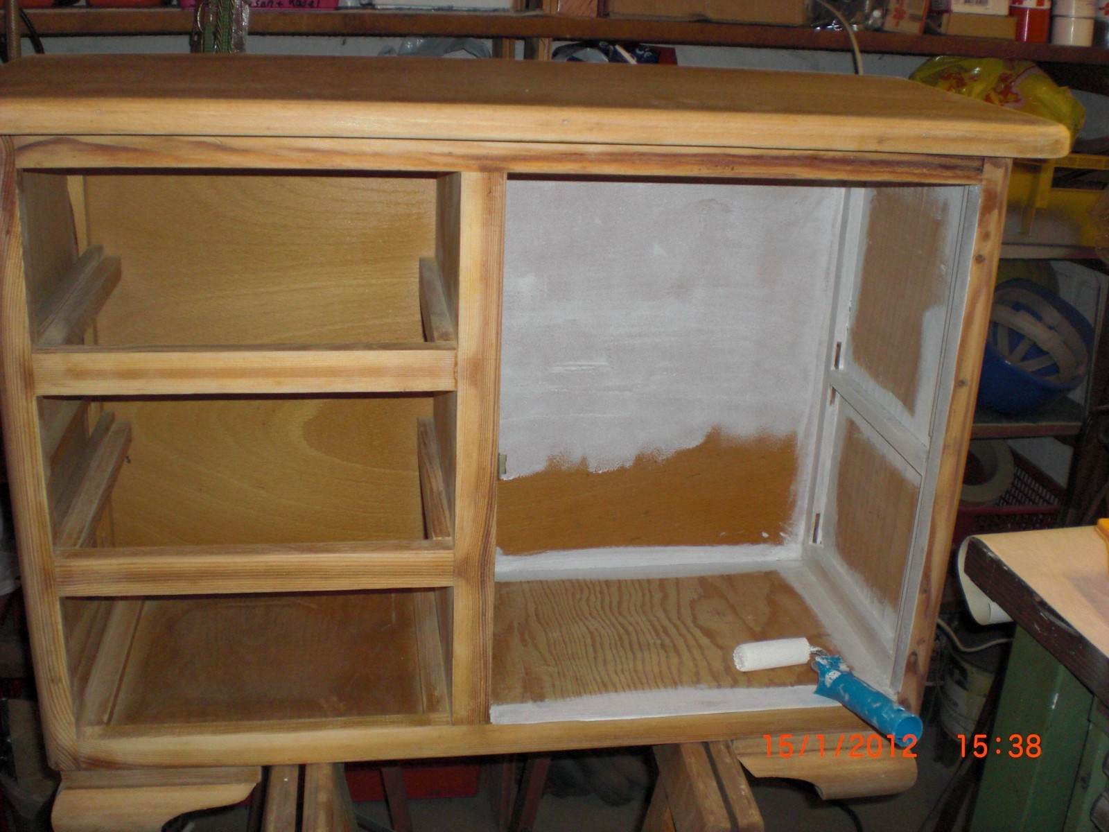 so, es ist der 9.8. und ich hab endlich mein "altes" regal fertig :-) ich suche nur noch den passenden platz dafür ;-) und einen kleinen spiegel hab ich auch noch fertig gemacht.