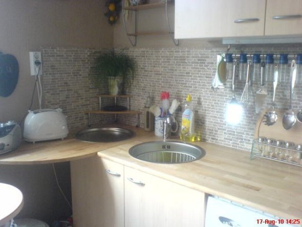 unsere kleine aber feine küche.. die fliesen find ich einfach klasse :)