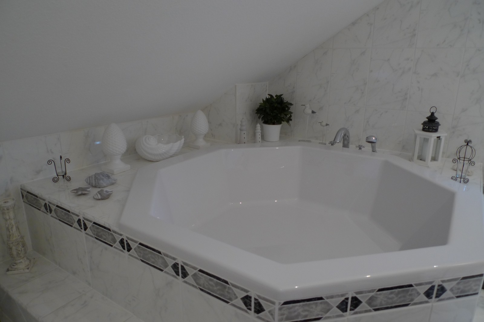 Ganz klassisch in Weiss,Grau und ein bisschen Schwarz gehalten,gefällt mir nach über 16 Jahren noch immer.