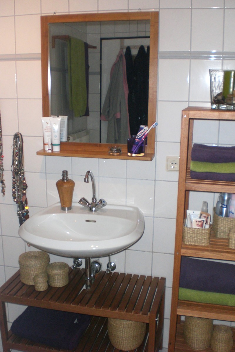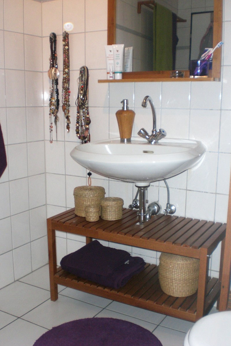 7.956um ein bisschen mehr Ablagefläche im Badezimmer zu bekommen, habe ich die Holzbank als Unterschrank umfunktioniert.