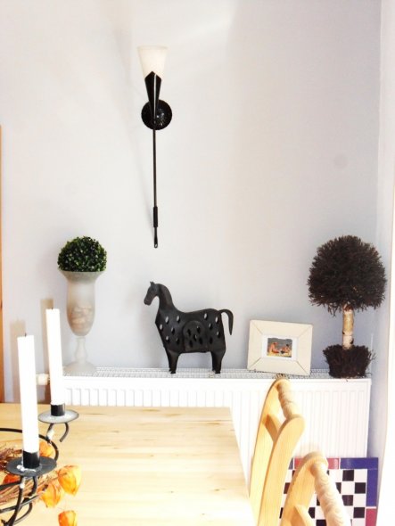 Mein Wohnzimmer würde ich ländlich-skandinavisch beschrieben. Die Schrankwand ist fast 20 Jahr alt und wird demnächst gegen niedrige weiße Kommoden ausgetauscht.
