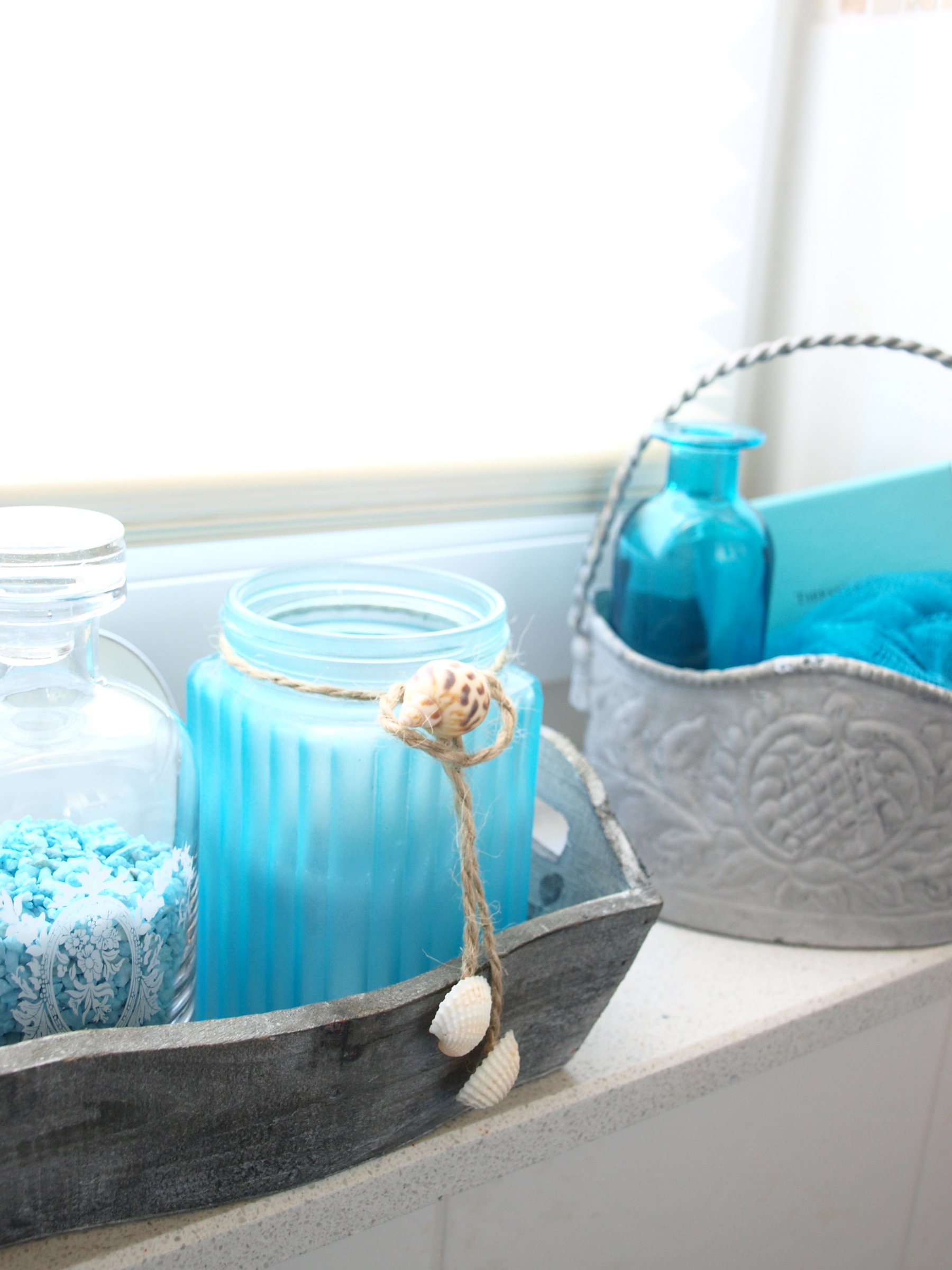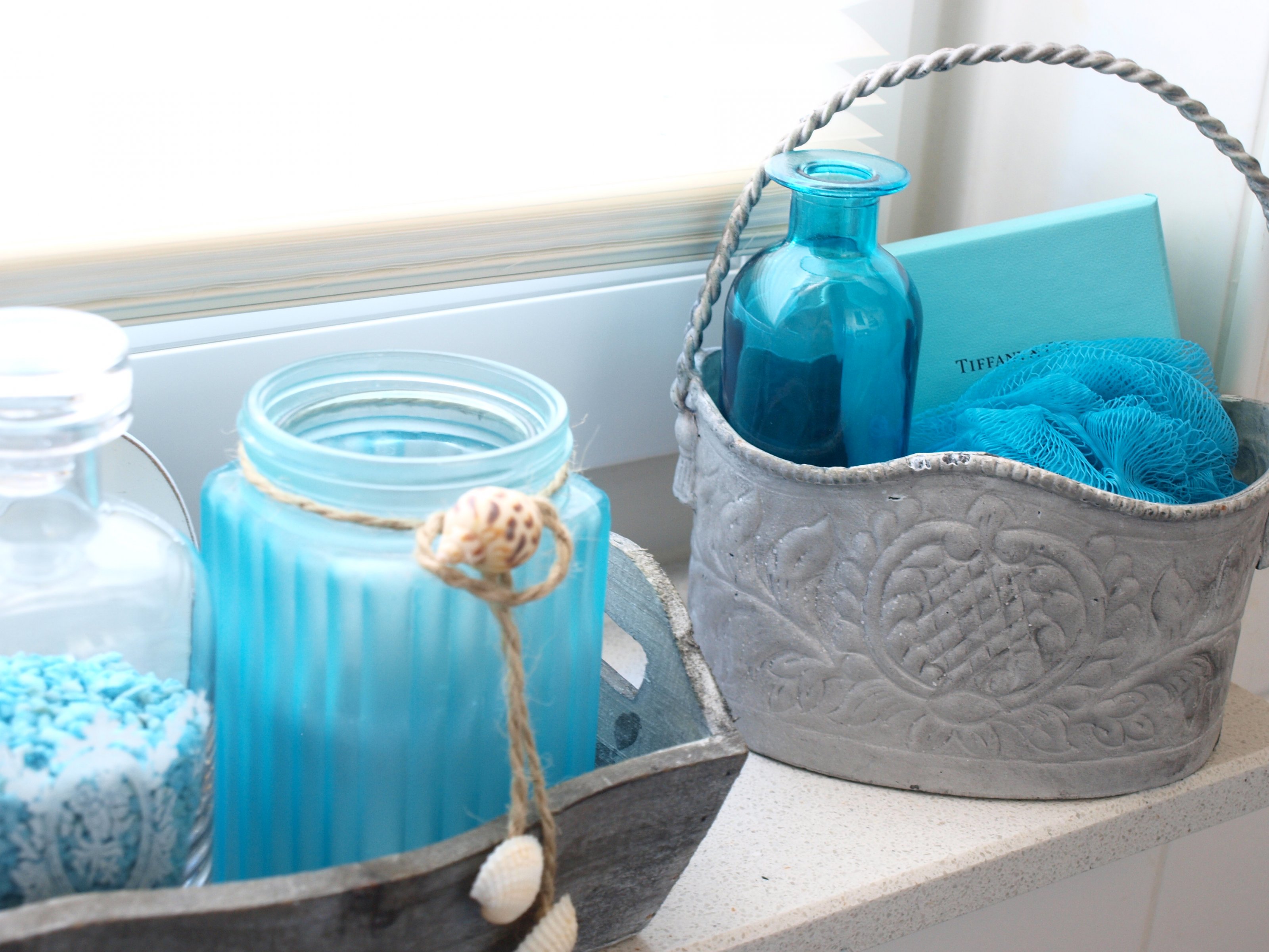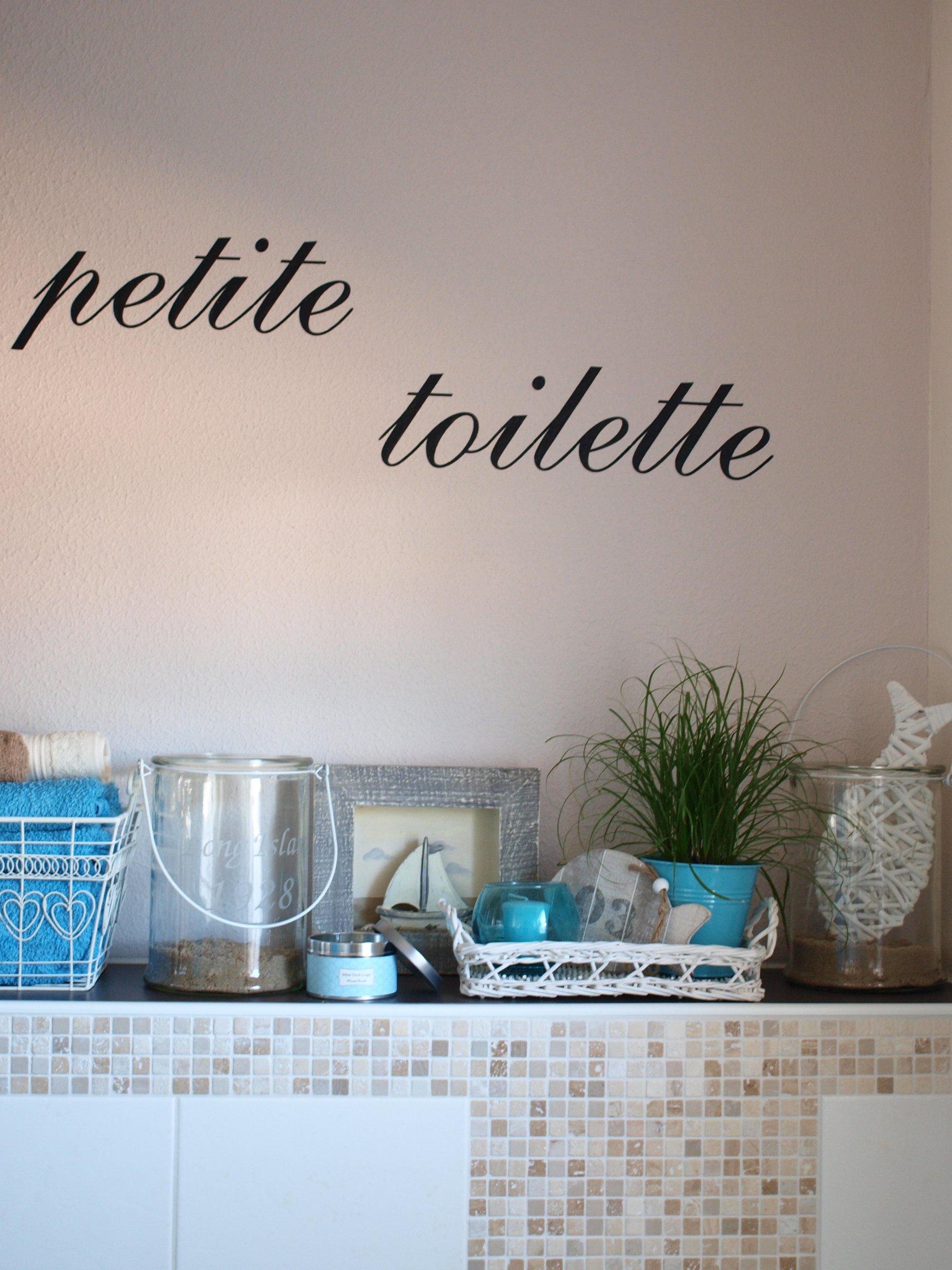 Das Gästebad ist eigentlich mein Bad. Daher habe ich es nach meinen Vorstellungen gestaltet.Meinem Mann ist es schon fast zu kitschig.Ich liebe es. :-)