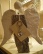 Selbstgebastelter Engel, aus einem Holzscheit, einer Styroporkugel und Flügeln aus Pappe mit Gipsbinden umwickelt.