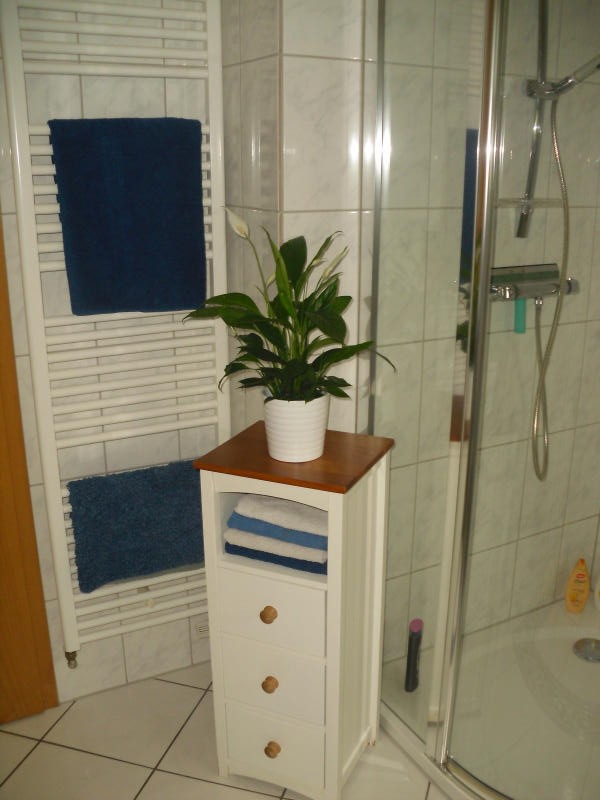 Das ist unser neues Badezimmer.Wir hatten vorher unten nur eine Gäste WC.Nun haben wir aus dem Abstellraum und dem WC ein großes Bad gemacht.
