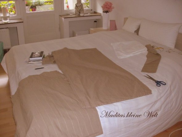 Also, ich habe keine Hussen gekauft und auch keine Hussen selber gennäht, sondern mich für ganz normale Überwürfe entschieden. Aus dem gleichen Stoff habe ich neue Kissenhüllen genäht. Für mich als Nichtnäherin war das eine echte Herausforderung. ABER ich habe es geschafft und bin ganz dolle stolz auf mich :-) Das Gröbste ist nun fertig. Es fehlen noch hier und da ein paar Dekoteilchen und meine neuen Raffrollos aber es geht halt nicht alles auf einmal.