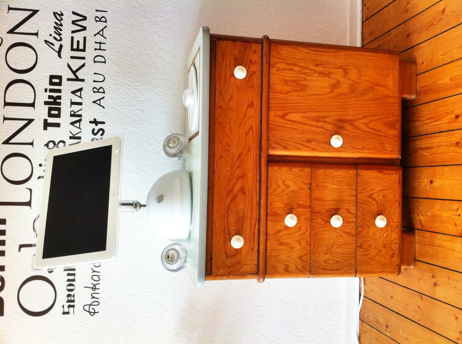 10.716Der erste Versuch von IKEA wegzukommen. Bank und Tisch sind aus Ulme, die Kommode ein Erbstück von Oma. In den nächsten Tagen kommt noch eine Lehne hinzu, um das Sitzen noch gemütlicher zu machen.