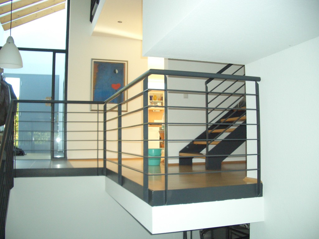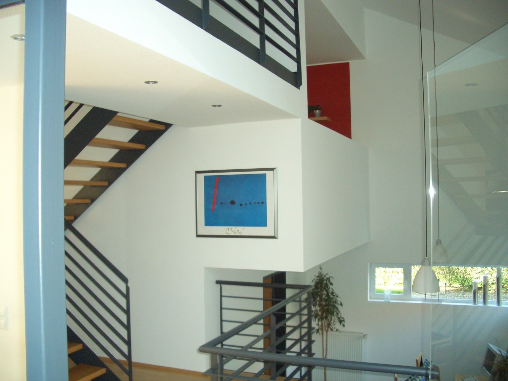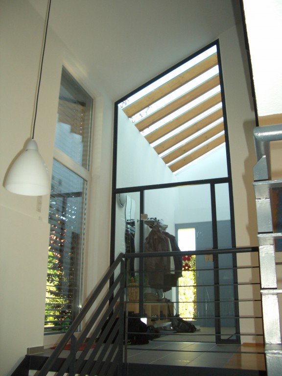 Hier seht ihr den Eingangsbereich in unserem Haus. Der Eingang ist durch eine Dachverglasung nach oben hin offen.