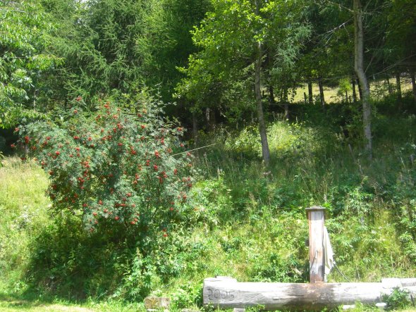 9.272Zu sehen ist die gute Stube in der rustikalen Almhütte. Rote karierte Vorhänge dürfen da in Österreich nicht fehlen. Das Badezimmer ist in Grün gehalten - zwangsläufig, denn es befindet sich im Freien ;-)