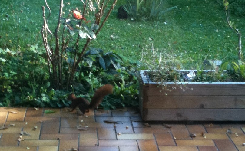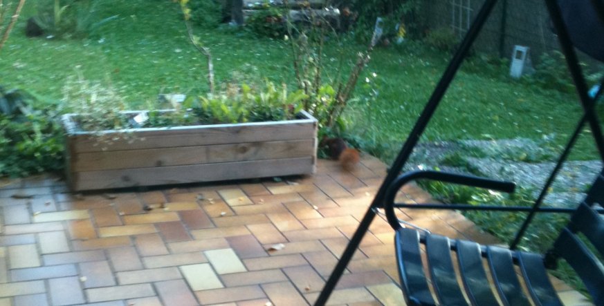 4.567Hier möchte ich Euch mal "meine" Haustiere ;-) zeigen. Es sind maximal bis zu vier Stück und sie sind leider sehr Kamerascheu. Aber es ist eine Freude ihnen zu zu schauen wie sie durch meinen Garten flitzen, Nachlauf (oder jagen?) spielen. Im Moment kann ich ihnen wieder dabei zu sehen wo die Nüsse verbuddelt werden. Im Frühjahr werde ich deswegen wieder sauer, da ich dann die ersten Nußbäumchen entdecke, da immer ein paar vergessen werden. Aber meistens freue ich mich über "meine" Haustiere. Ab und zu stolzieren auch bis zu drei Fasanen hier herum, aber die konnte ich wirklich noch nicht knipsen - vielleicht wird das ja noch was. Und nein - mein Haus ist nicht auf einem Zoogelände gebaut.