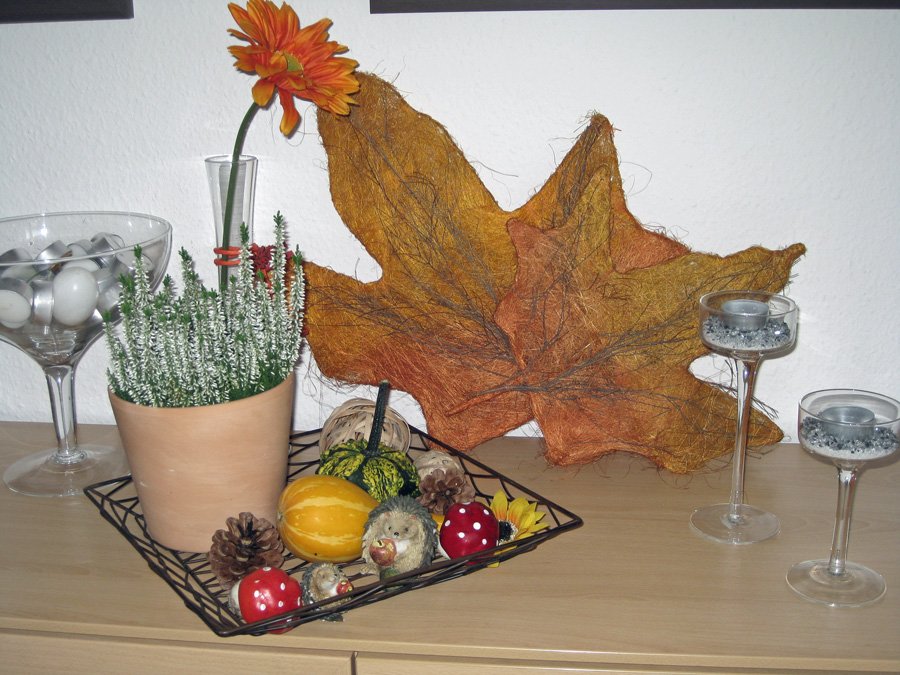 Nun auch von mir ein bischen Herbstdeko. Obwohl das Wetter zu mindestens am Mittag noch eher sommerlich ist.