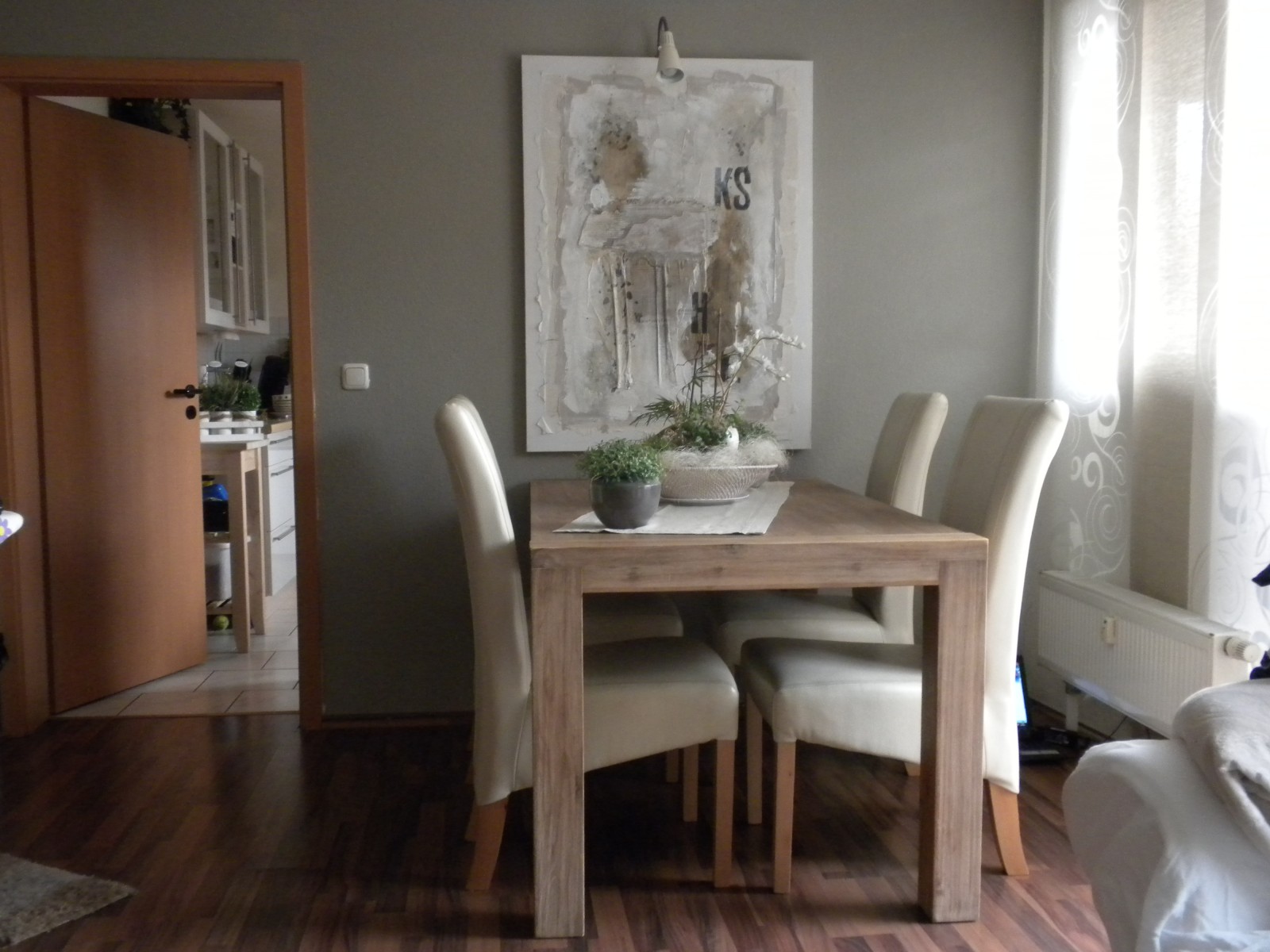 Wohn und Esszimmer sind ein einem Wohnbereich. Ich versuche immer alles harmonisch miteinander zu gestallten.