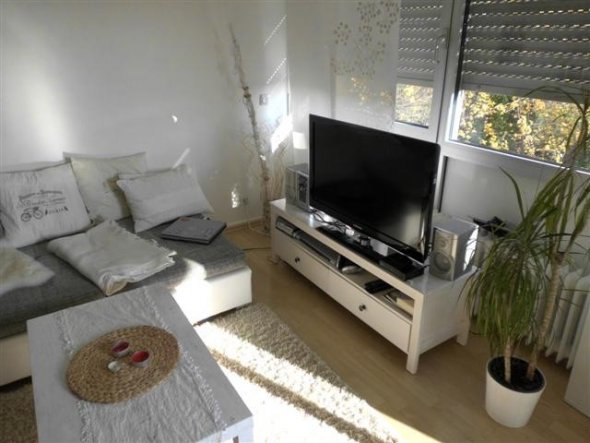 Unser Wohnzimmer habe ich mit vielen hellen Farben gestaltet. Die Möbel sind hauptsächlich weiß gehalten. So wirkt der Raum hell und freundlich :-)