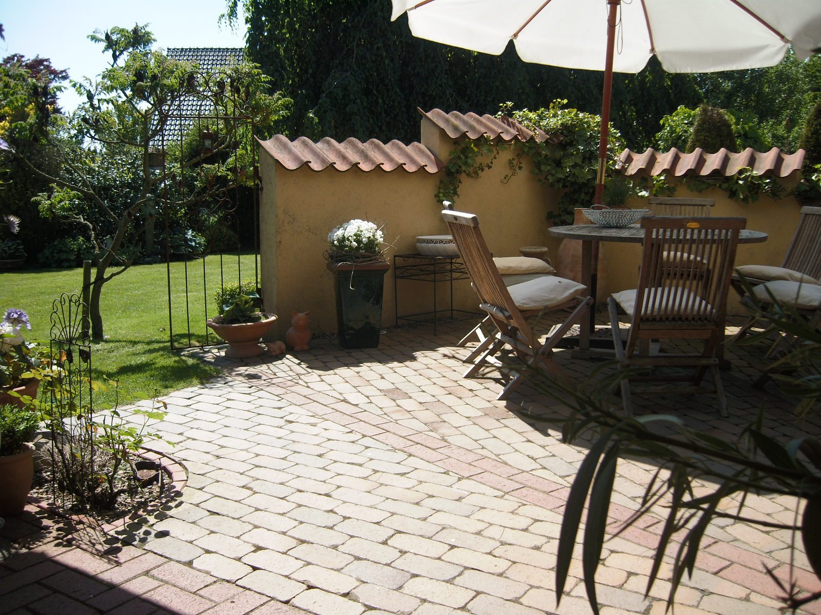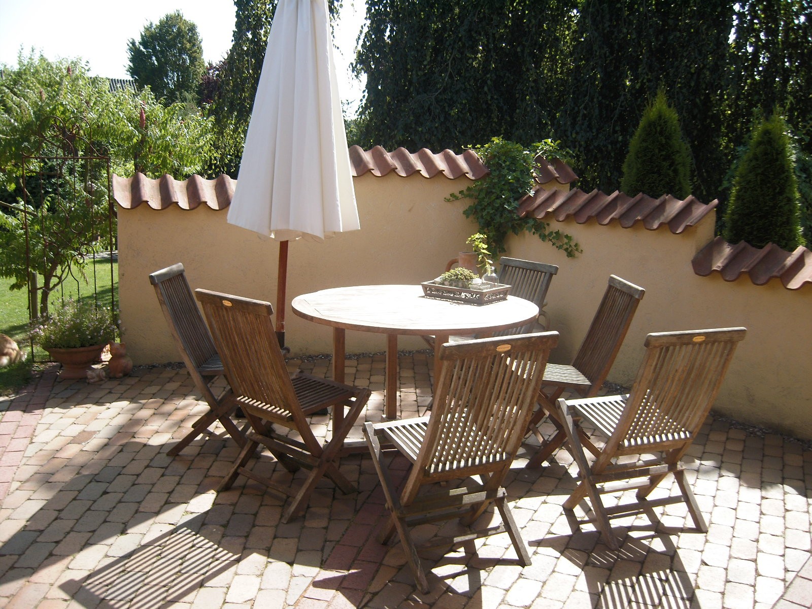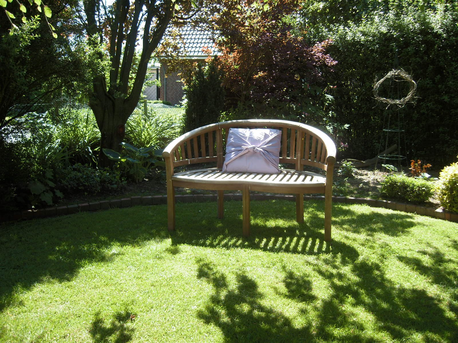 Aus der Vogelperspektive.Unter der grossen Hängebuche lässt es sich im Sommer, wenn es heiss ist, sehr gut aushalten.