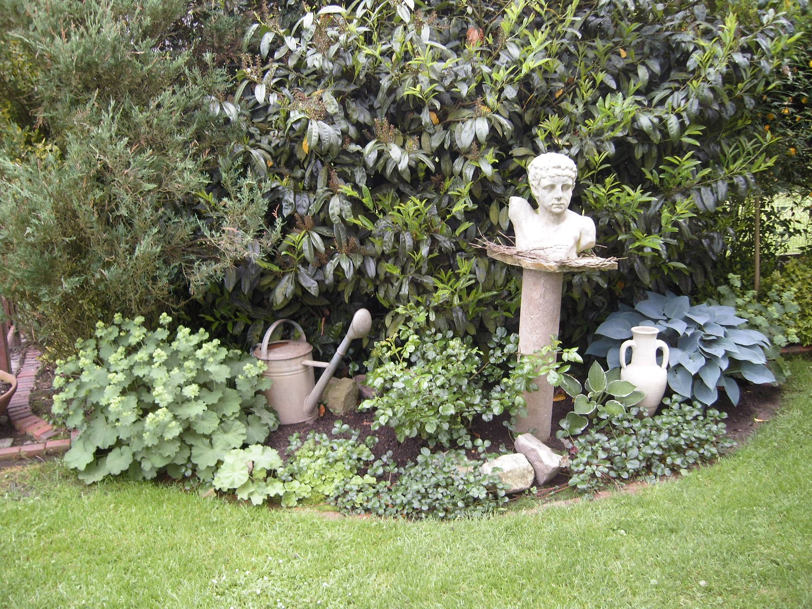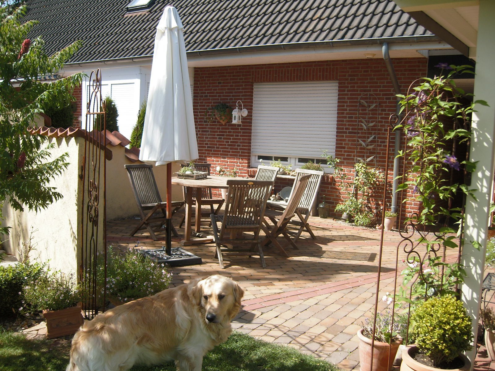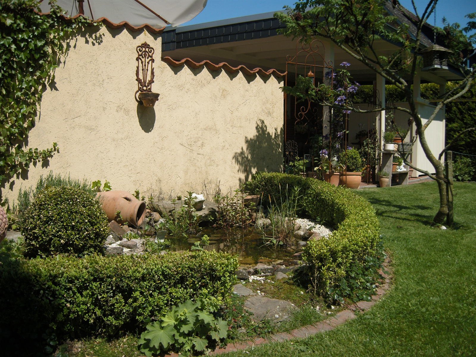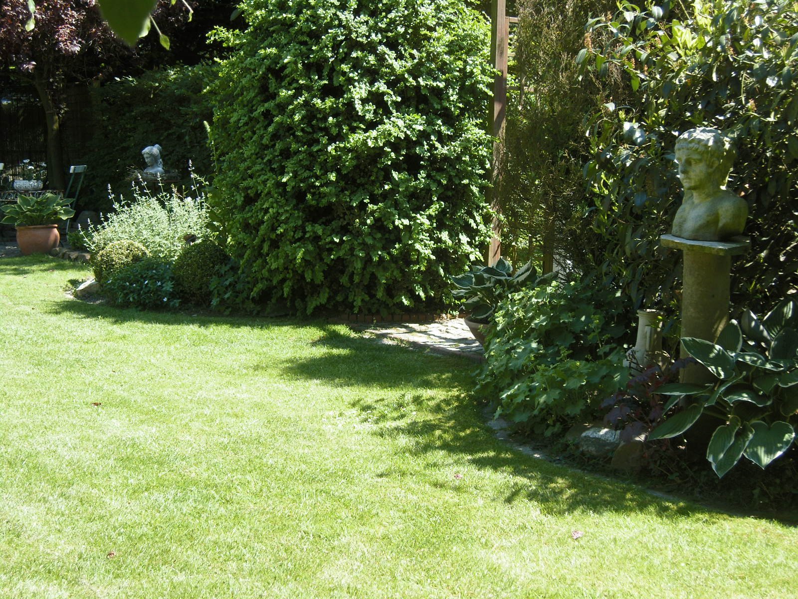 Aus der Vogelperspektive.Unter der grossen Hängebuche lässt es sich im Sommer, wenn es heiss ist, sehr gut aushalten.