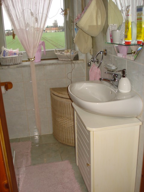 Ein ganz kleines Gäste WC, passt aber alles rein was man so braucht (selbst eine Dusche ist vorhanden).