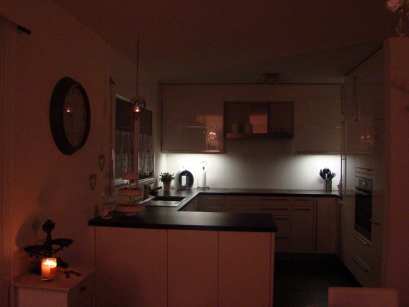 Unsere schlichte offene Küche...ich liebe braun und weiss:-))