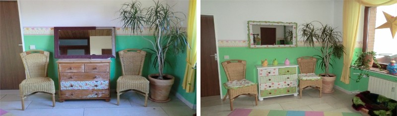 Ich wollte meinen Flur neu gestalten und hab einfach Möbel die auf den Sperrmüll sollten neu gestaltet. Finde es sieht ganz nett aus..;-)