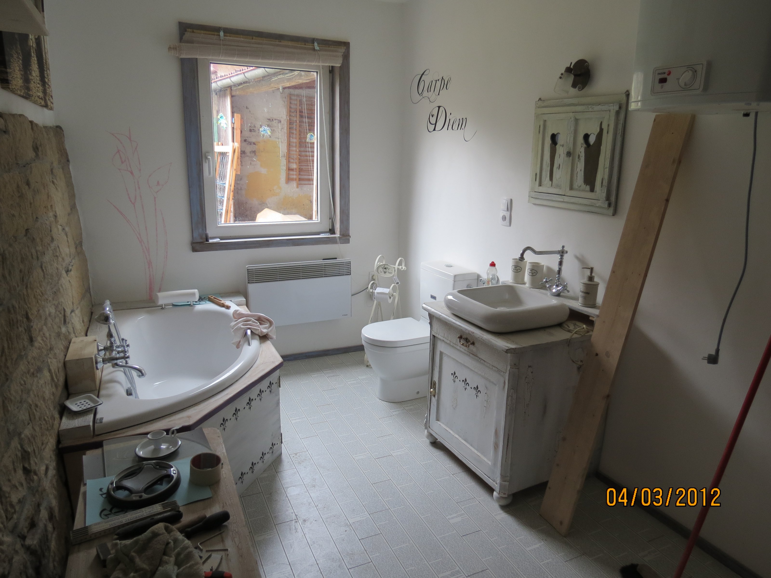 Mein Bad im Shabby Chic Stil mit modernen Elementen untermalt.