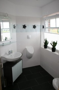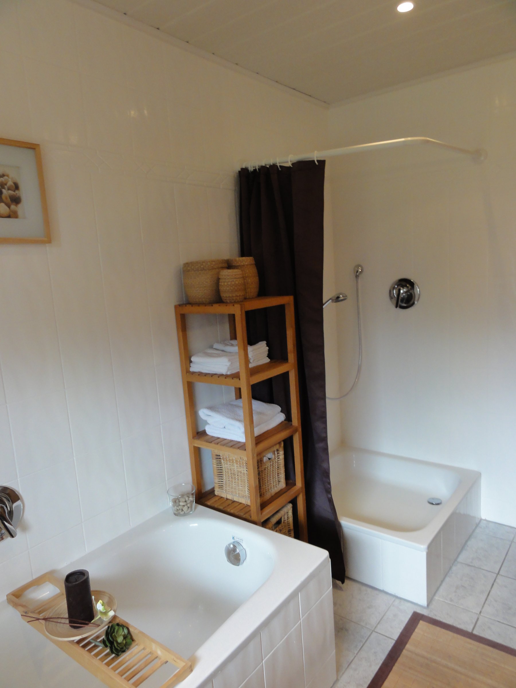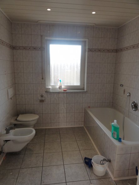 Leider konnten wir nur ein Bad renovieren. Darum habe ich eine einfache Lösung für das Gästebad gesucht. Die Antwort darauf ist: Fliesenlack ;-)
