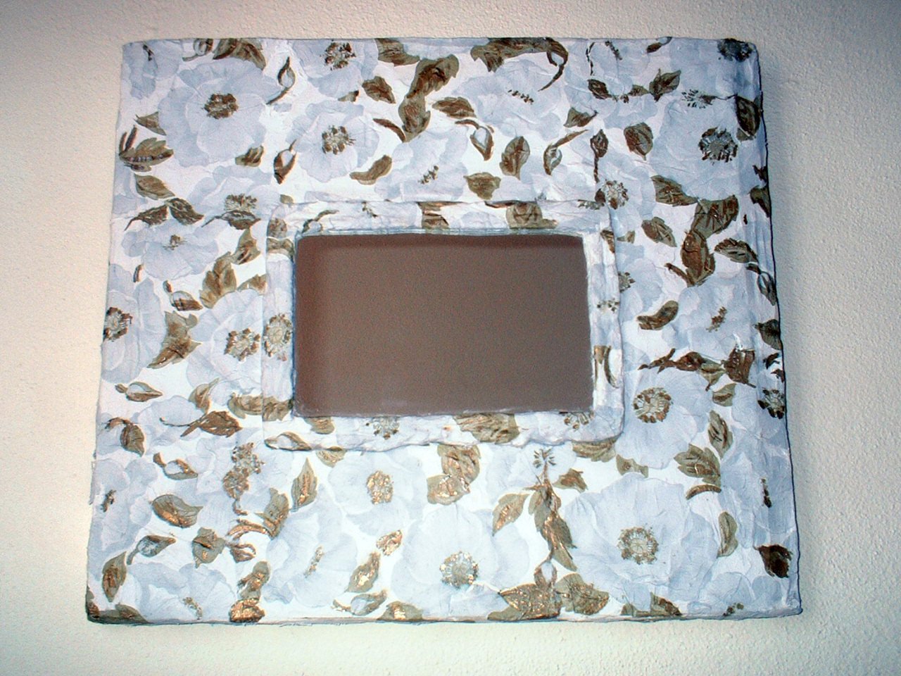 aus einer alten Schranktür, etwas Gips, einem Stück Spiegelglas und Servietten habe ich einen Spiegel gemacht. Nach dem Trocknen verschiedene Konturen mit Goldfarbe nachgezeichnet