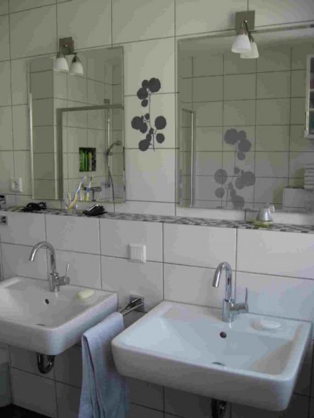 Unser Bad sieht auch etwas kahl für den einen oder anderen Betrachter aus, allerdings bin ich schon auf der Suche nach Raffrollos.