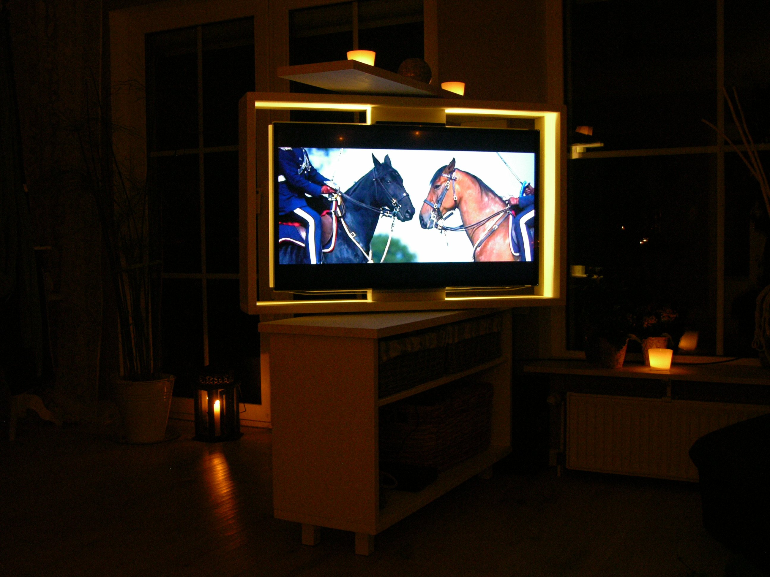 Wir brauchten einen Fernsehschrank als Raumteiler. Mein Mann hat sich dieses geniale drehbare Modell ausgedacht und selbst gebaut...