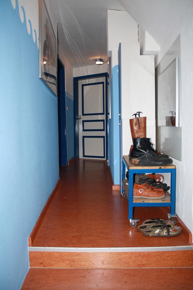 Unser Flur im DG. Die Farbgestaltung erinnert mich immer an unserern Urlaub auf Kreta und Santorini!