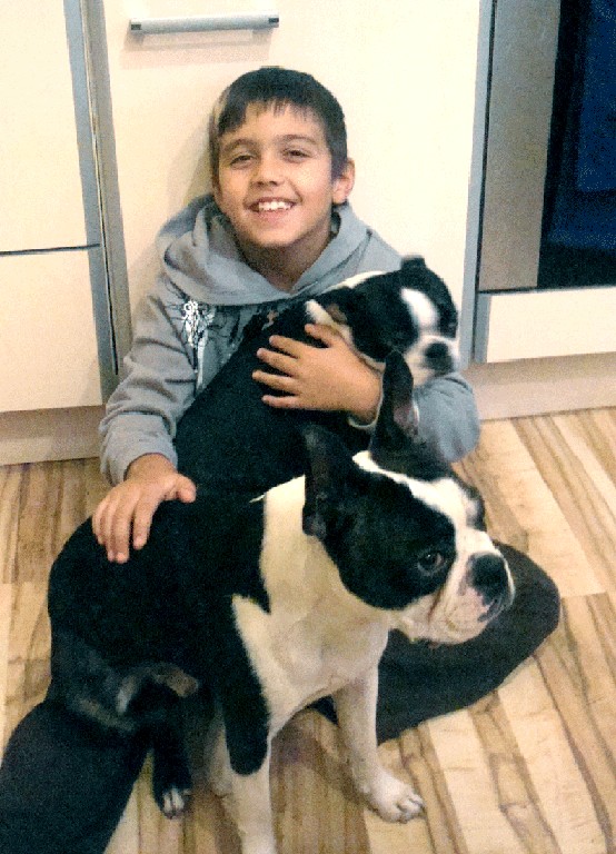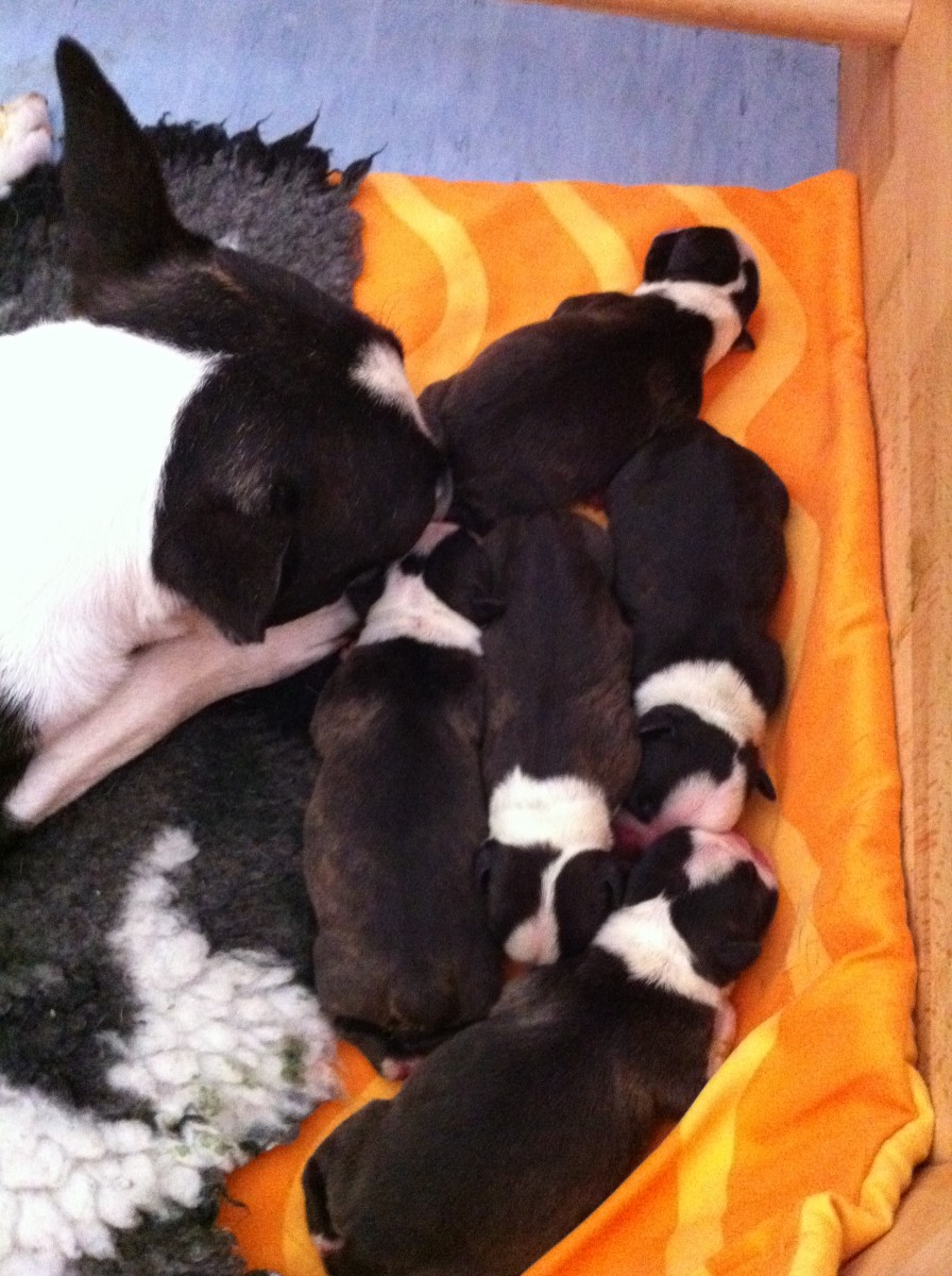 4.386Hier sind unsere Haustiere zu sehen. Dazu gehören 3 Boston Terrier, mit denen wir auch eine kleine Liebhaberzucht betreiben, sowie unsere Katze und Schildkröte.