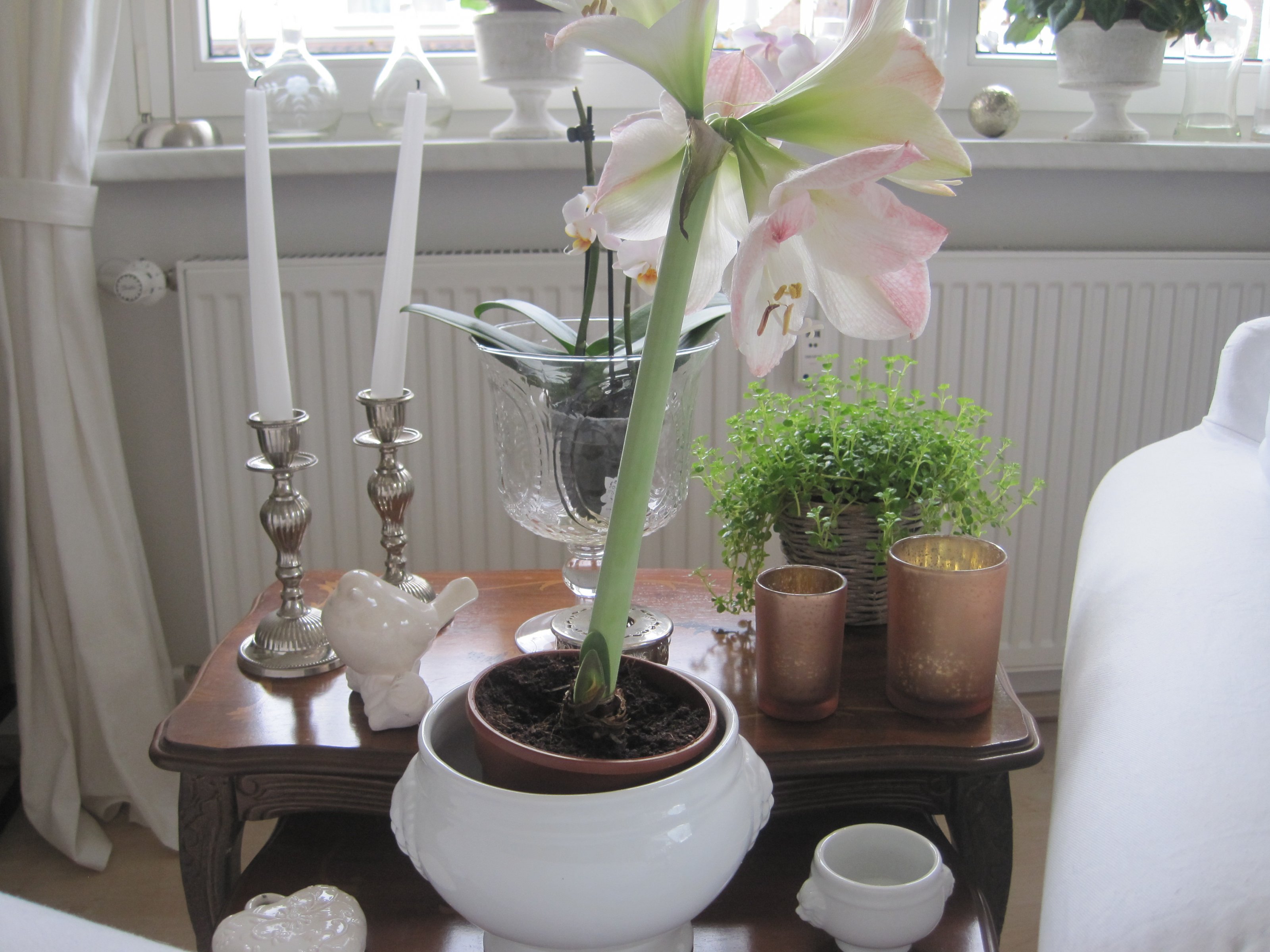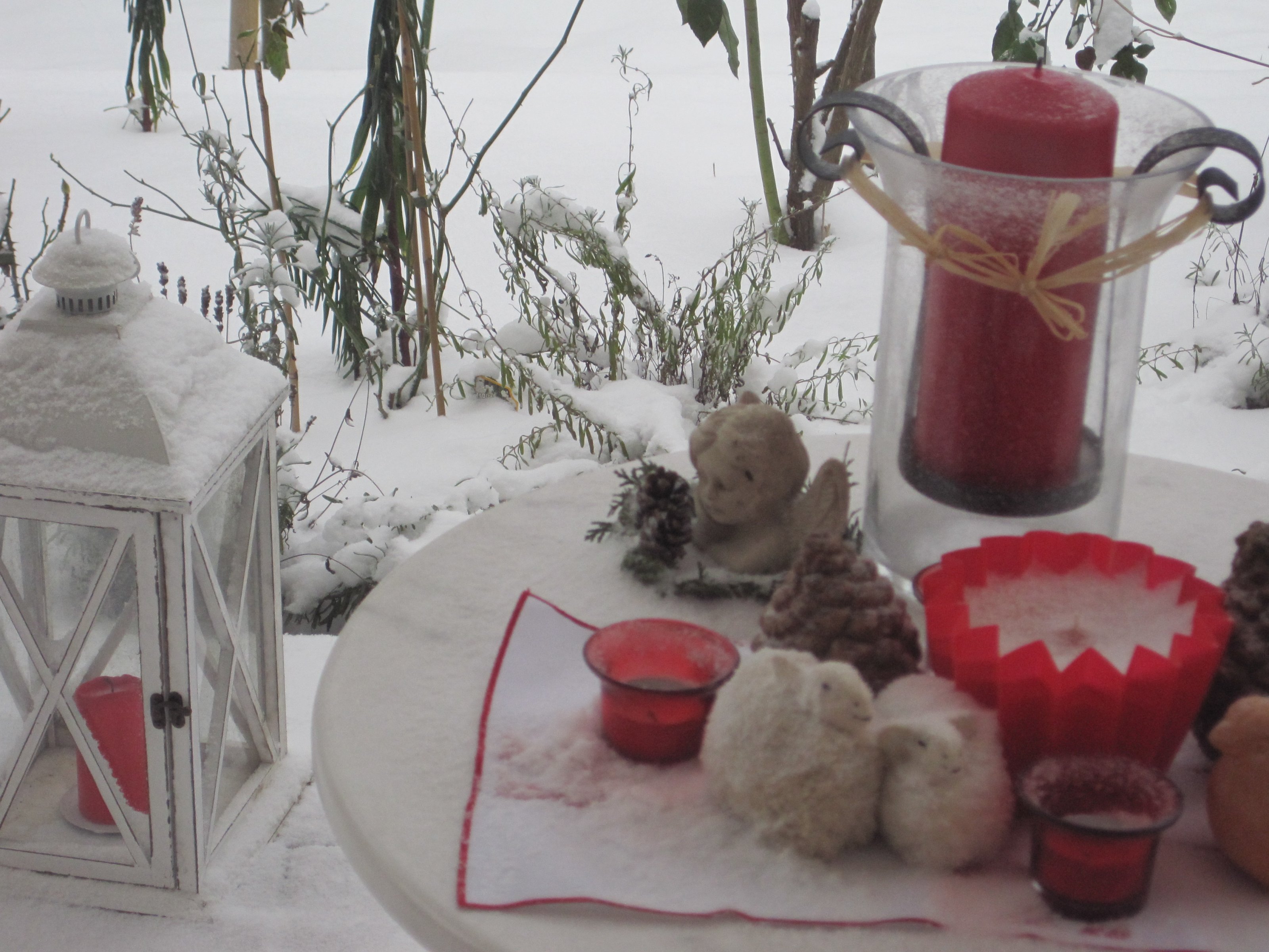 Schade, dass die weiße Pracht schon wieder verschwunden ist. Sogar auf das Tischchen hat es den Schnee geweht. Irgendwie schön!