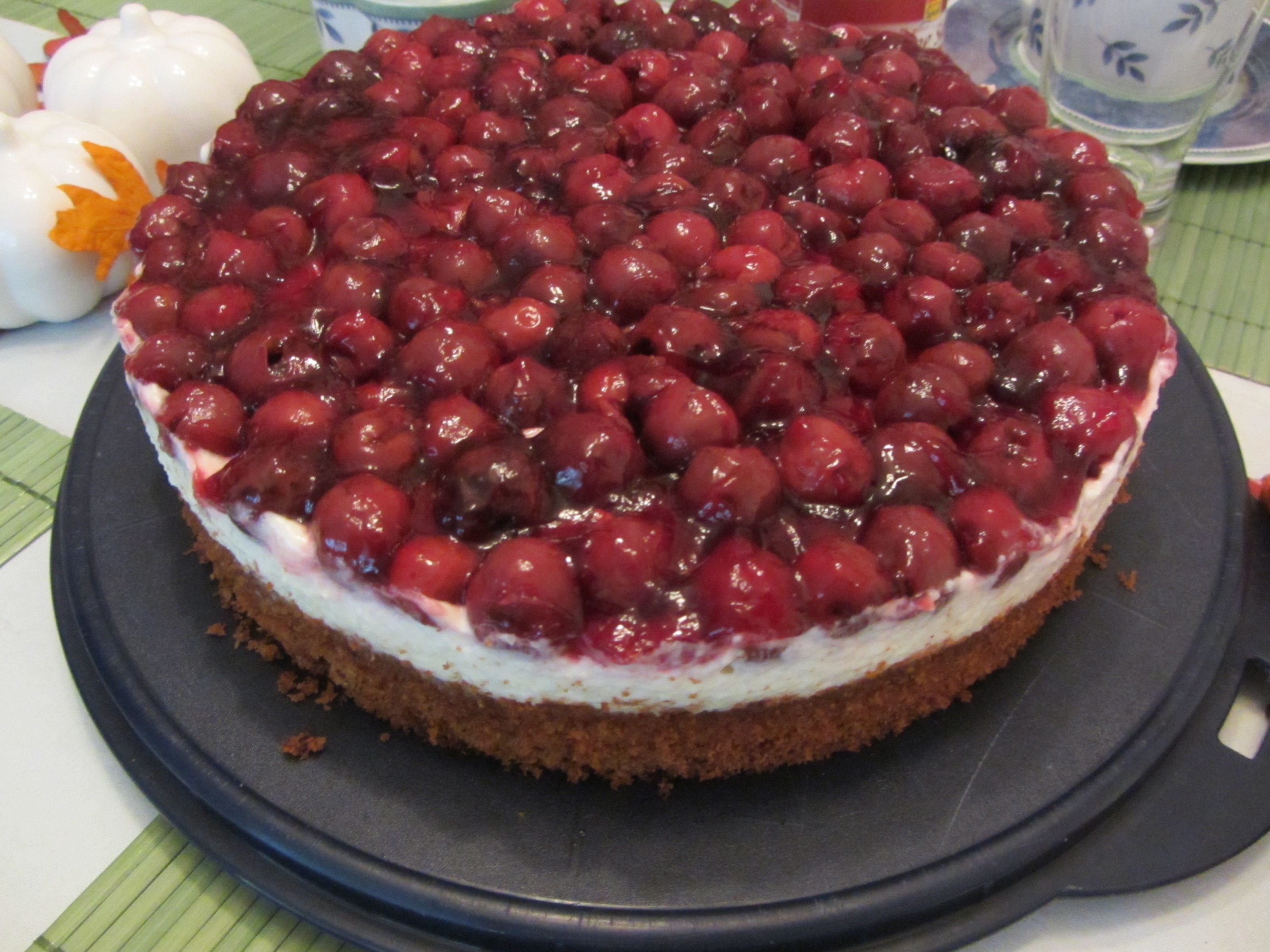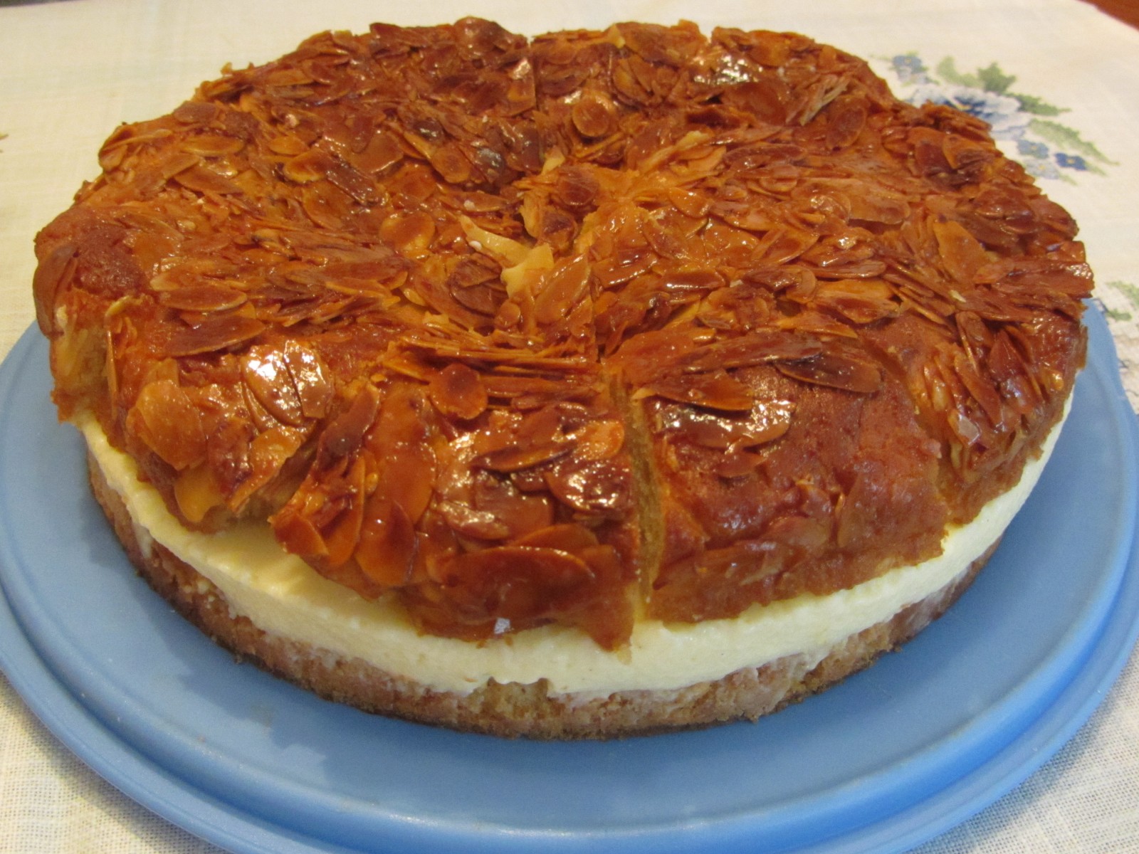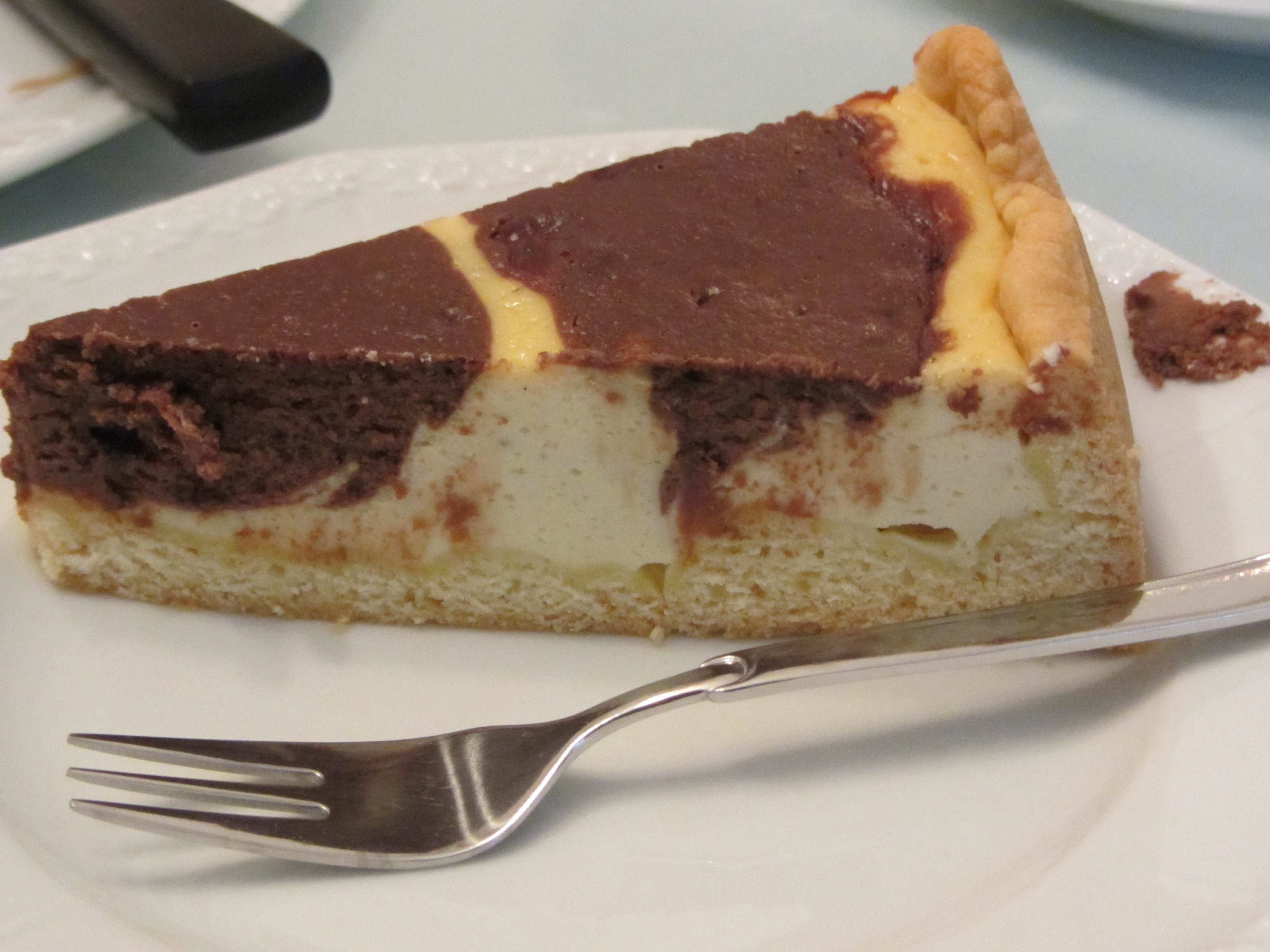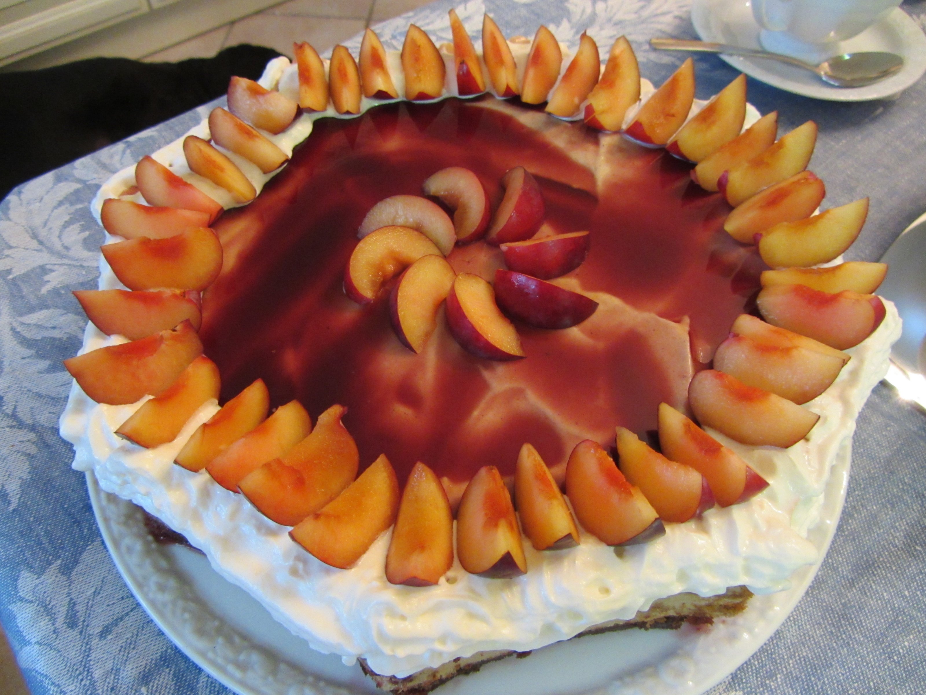 Die Füllung besteht aus Sahne mit Vanillepuddingpulver, Eierlikör, Schokoraspeln und Bananenstücken