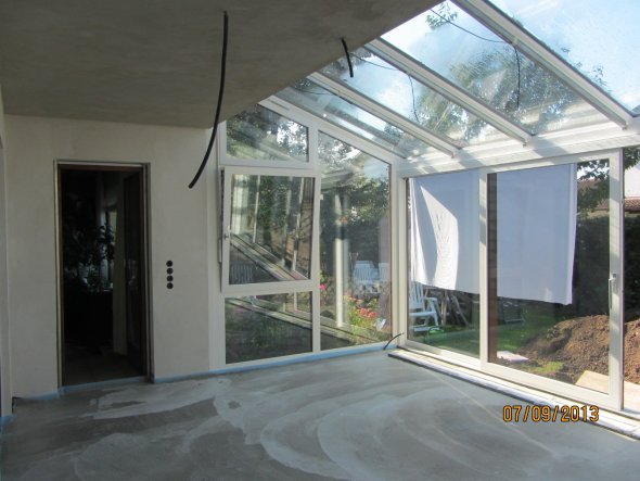 9.8.13 - Der Wintergarten ist aufgestellt. Nun müssen noch Elektrik, Heizung, Wände und Boden fertig gestellt werden