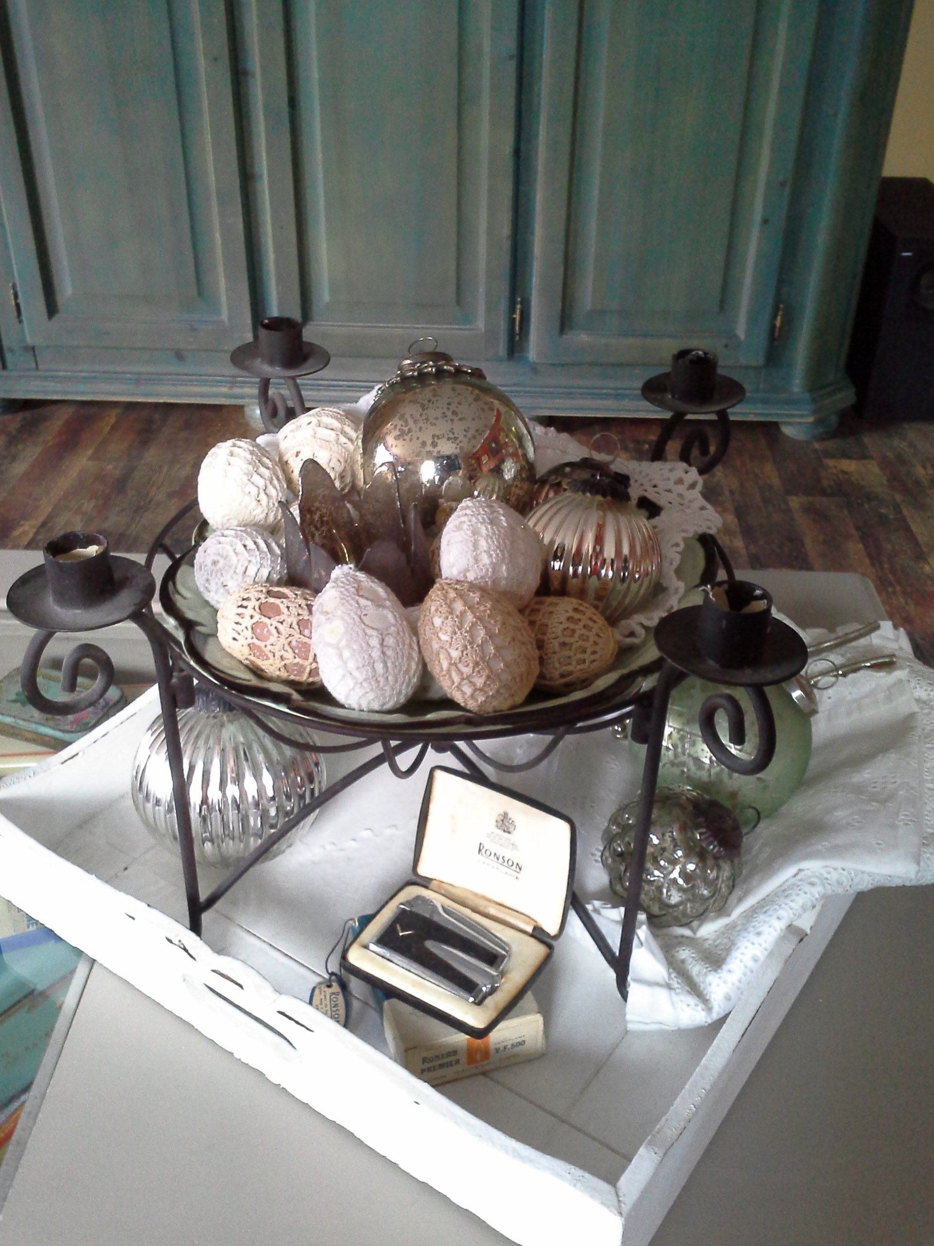 Hier erste Bilder von unserem Wohnzimmer zur Osterzeit 2014. Die Wände sollen demnächst eine hellere Farbe bekommen. Ich liebe meine Erbstücke und Flohmarktfunde!