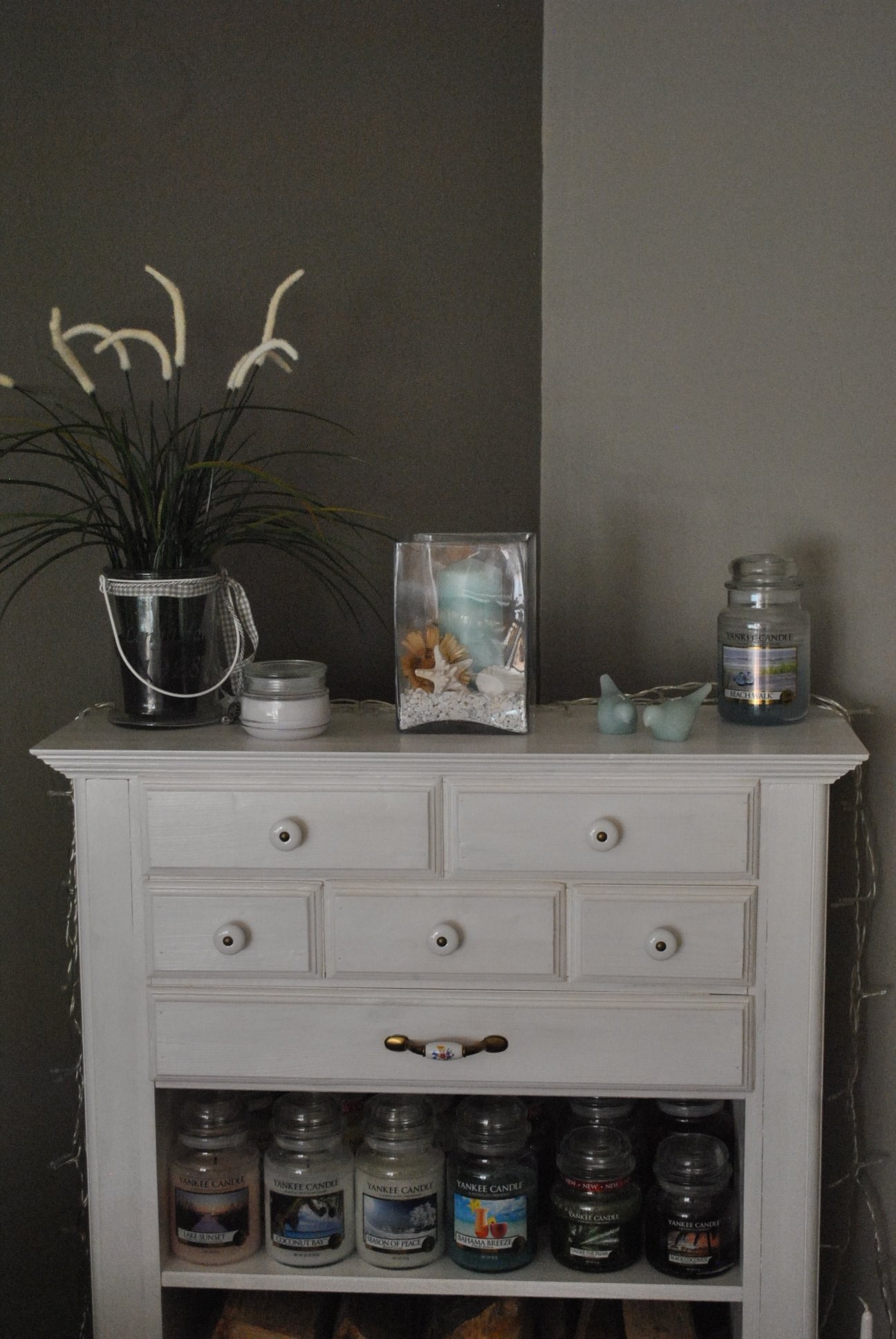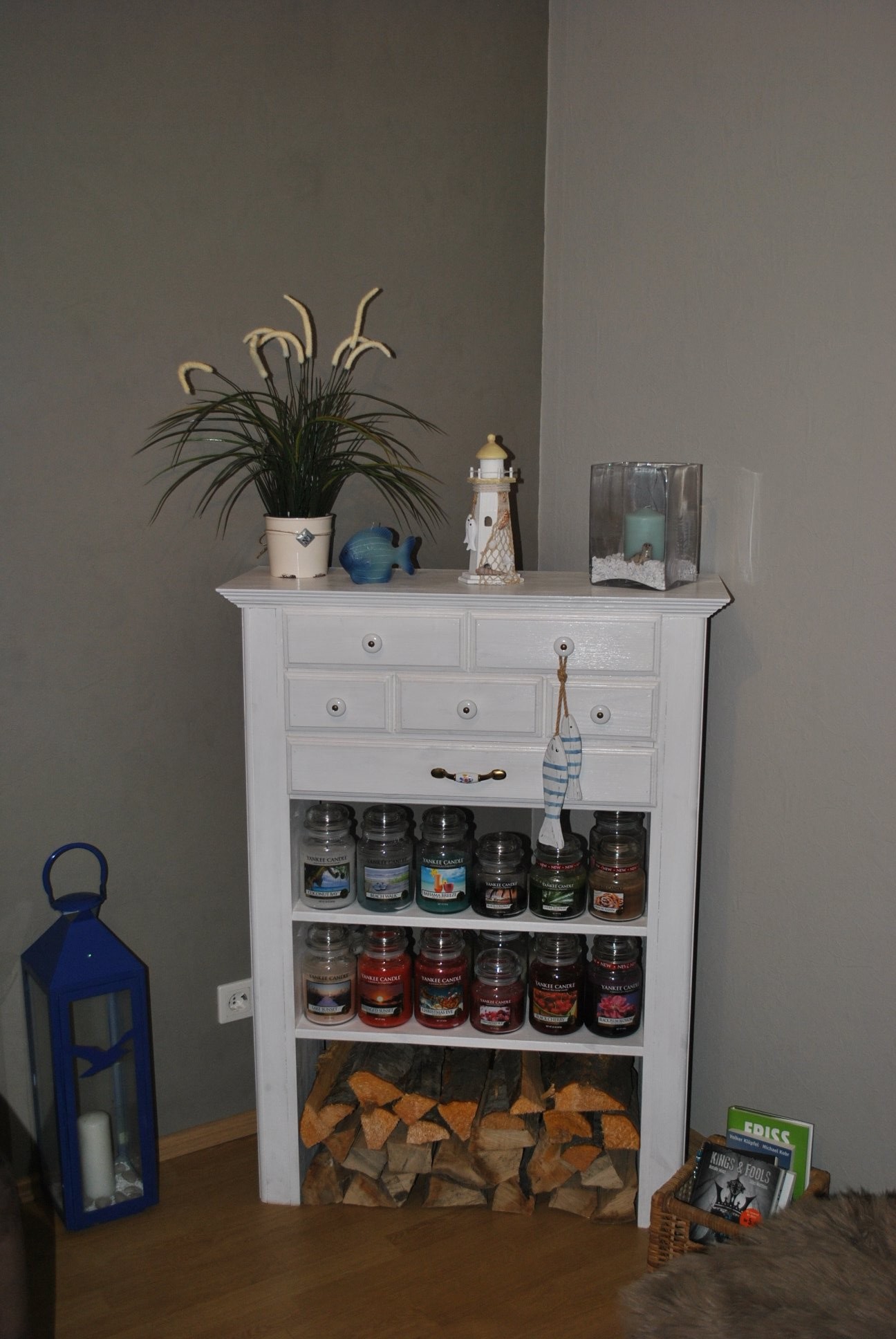 Diese Kommode hat mein lieber Mann für mich gebaut,damit ich meiner Duftkerzen Leidenschaft nachkommen kann und sie alle,alle unterbringen kann...in den Schubladen ist zb Platz für Teelichter und Dufttarts......