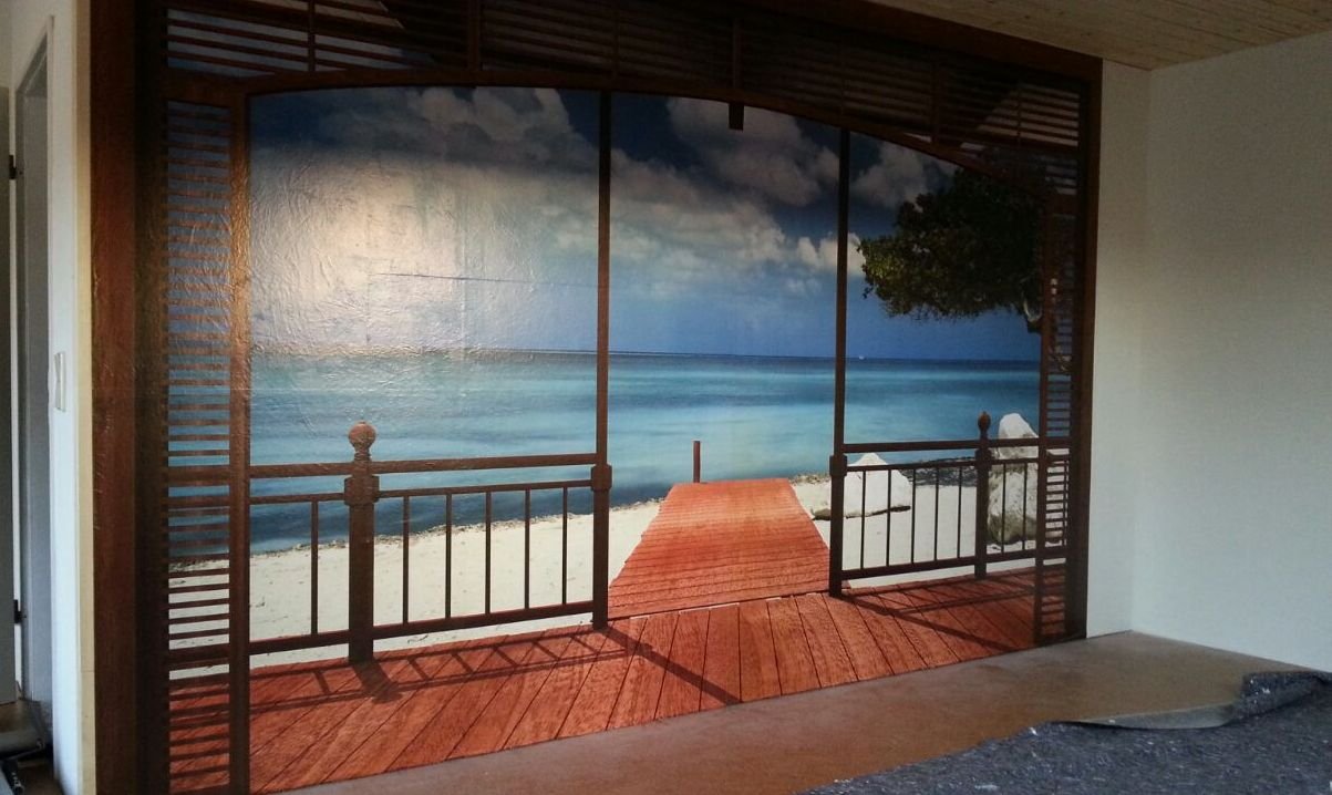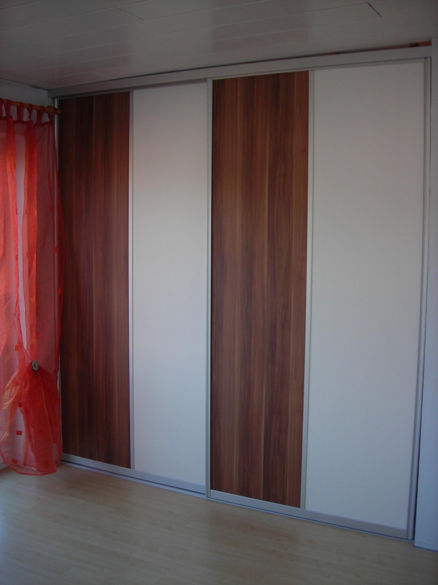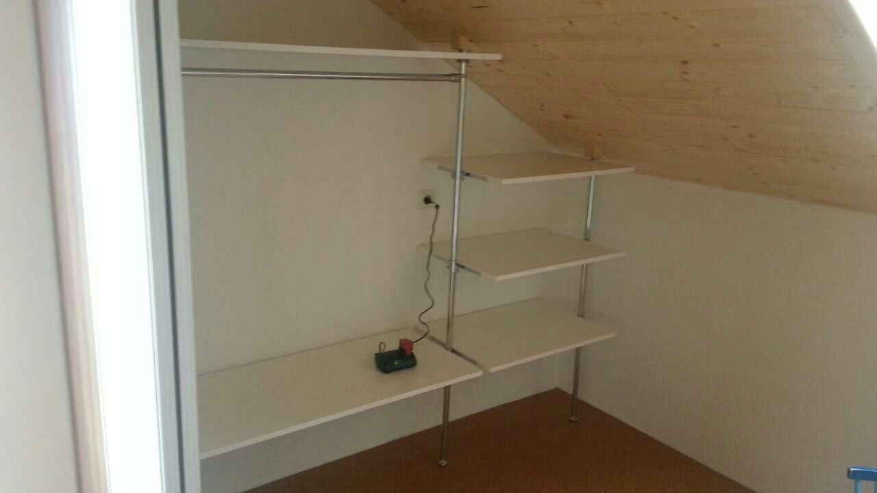 Hinter dieser Schiebetüre verbirgt sich unser neuer begehbarer Kleiderschrank.