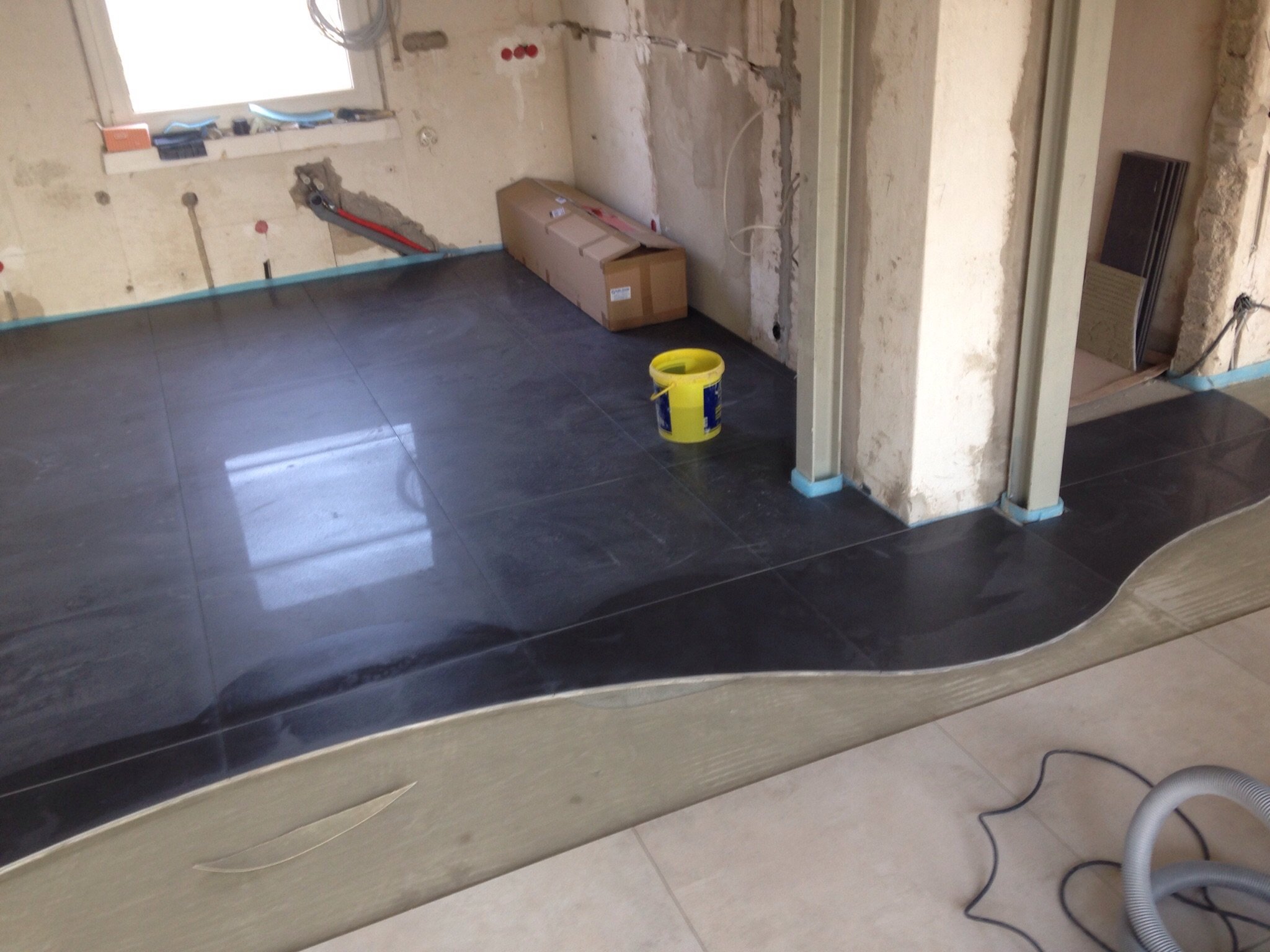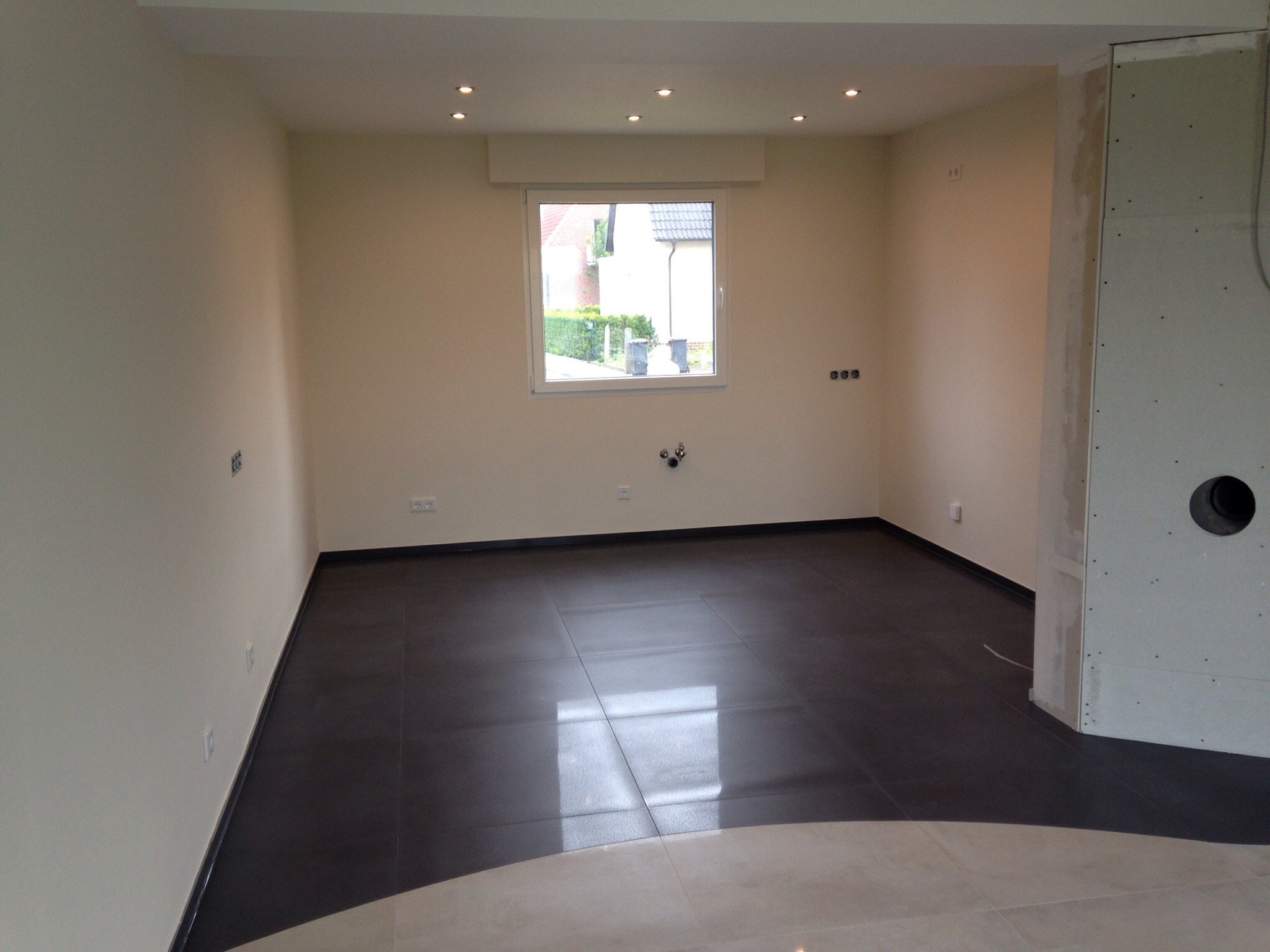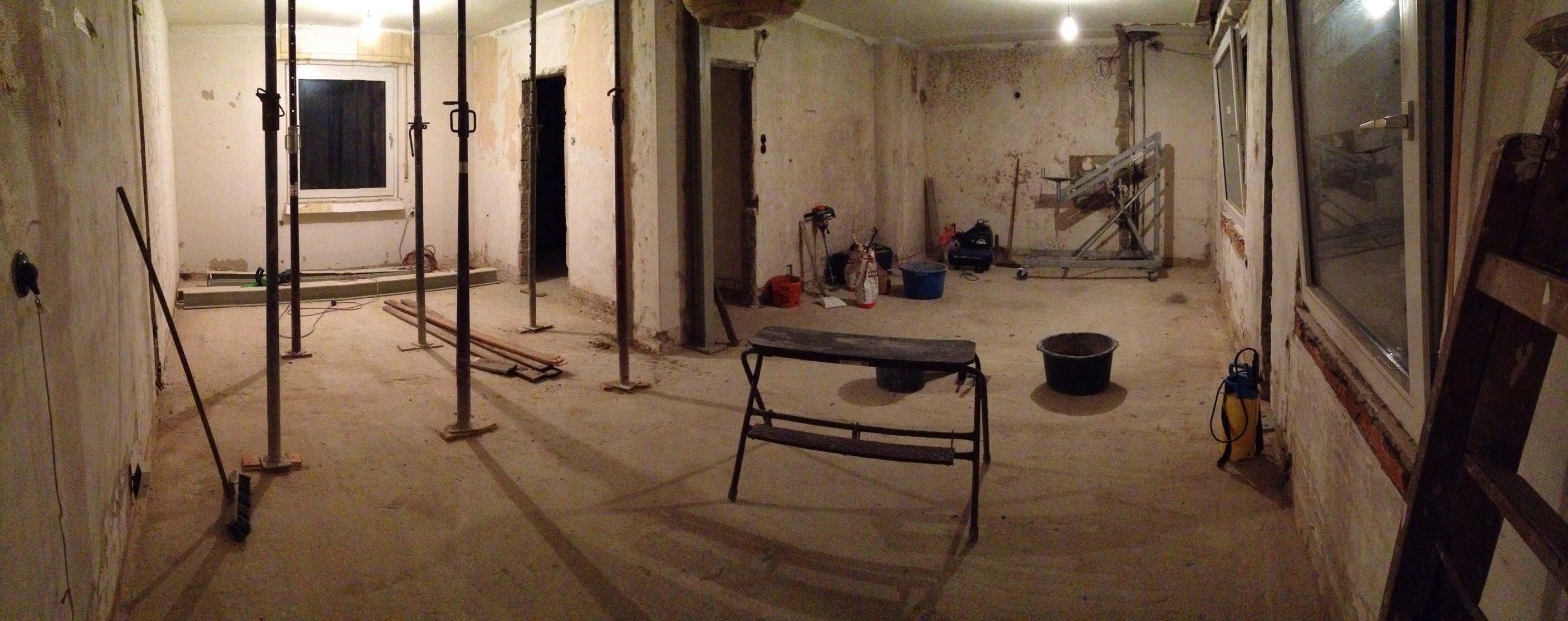21.05.2015: Der fertige Raum bevor die Küche kam. Um die Ecke rum sieht es noch immer aus wie nach einem Bombenanschlag