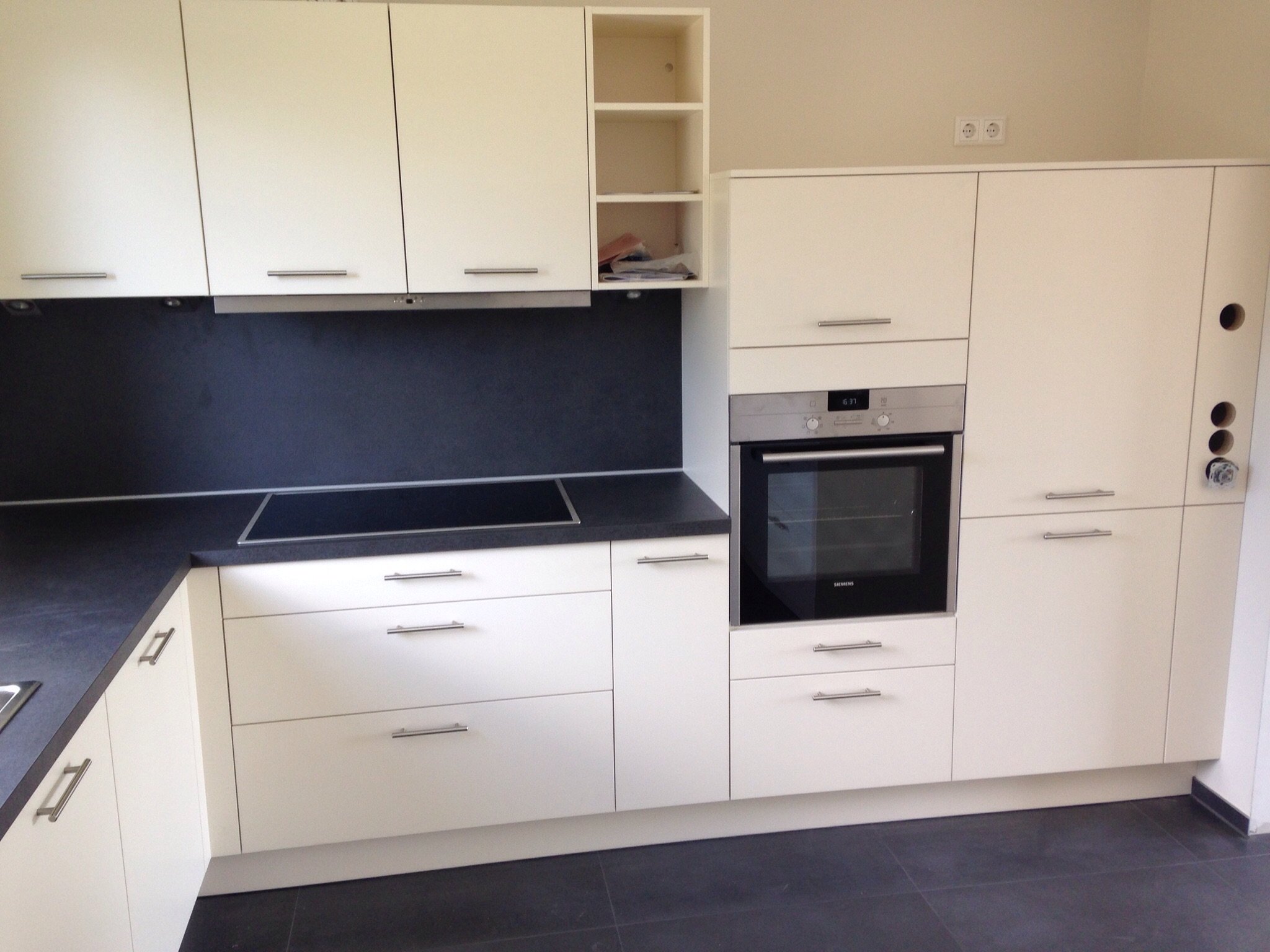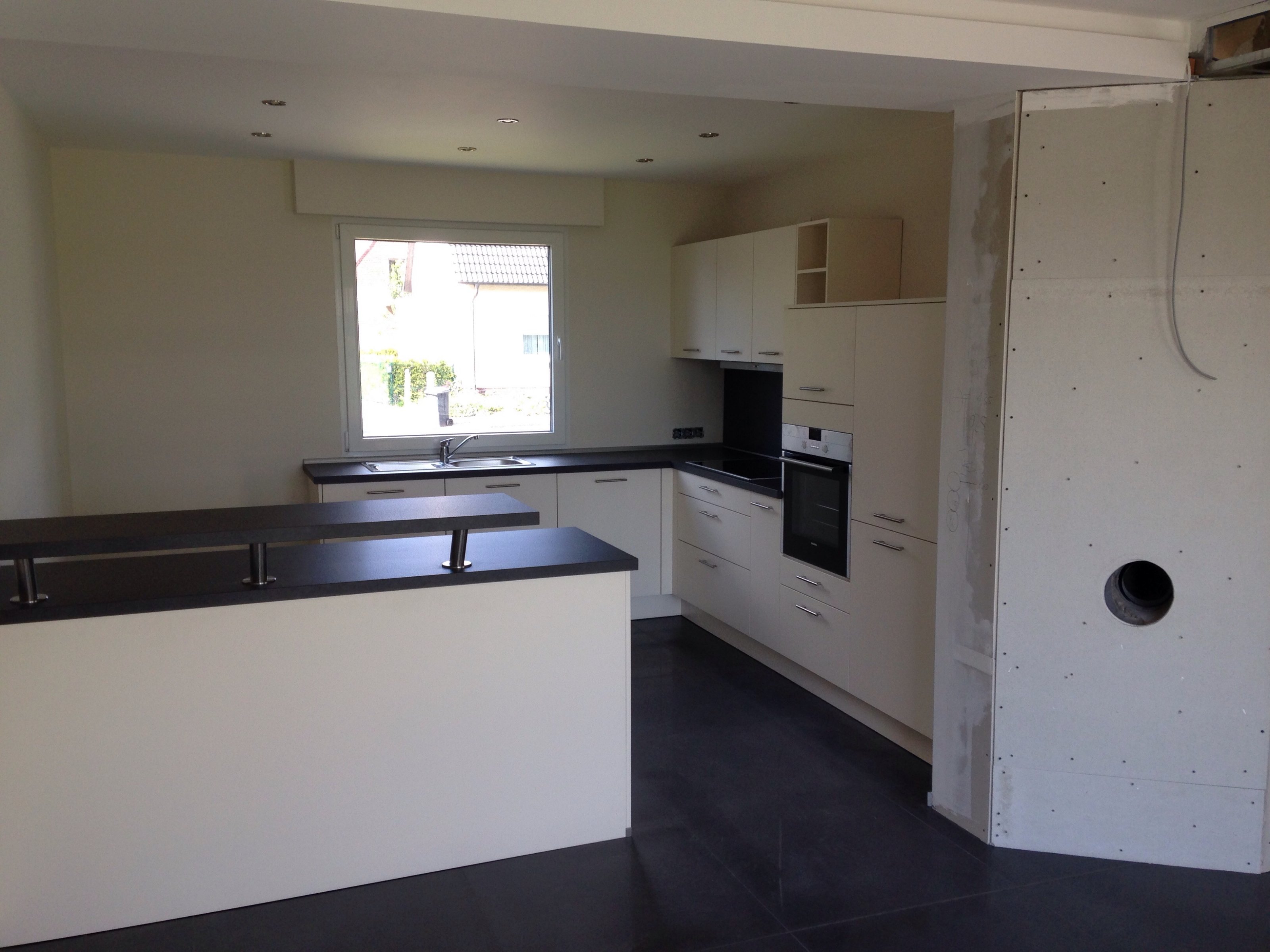 13.050Die Küche war ursprünglich ein kleiner Raum, in dem wir eine Wand rausgerissen haben, damit ein offener Wohnbereich entsteht und die Tür haben wir zugemauert um die Küchenmöbel besser stellen zu können.