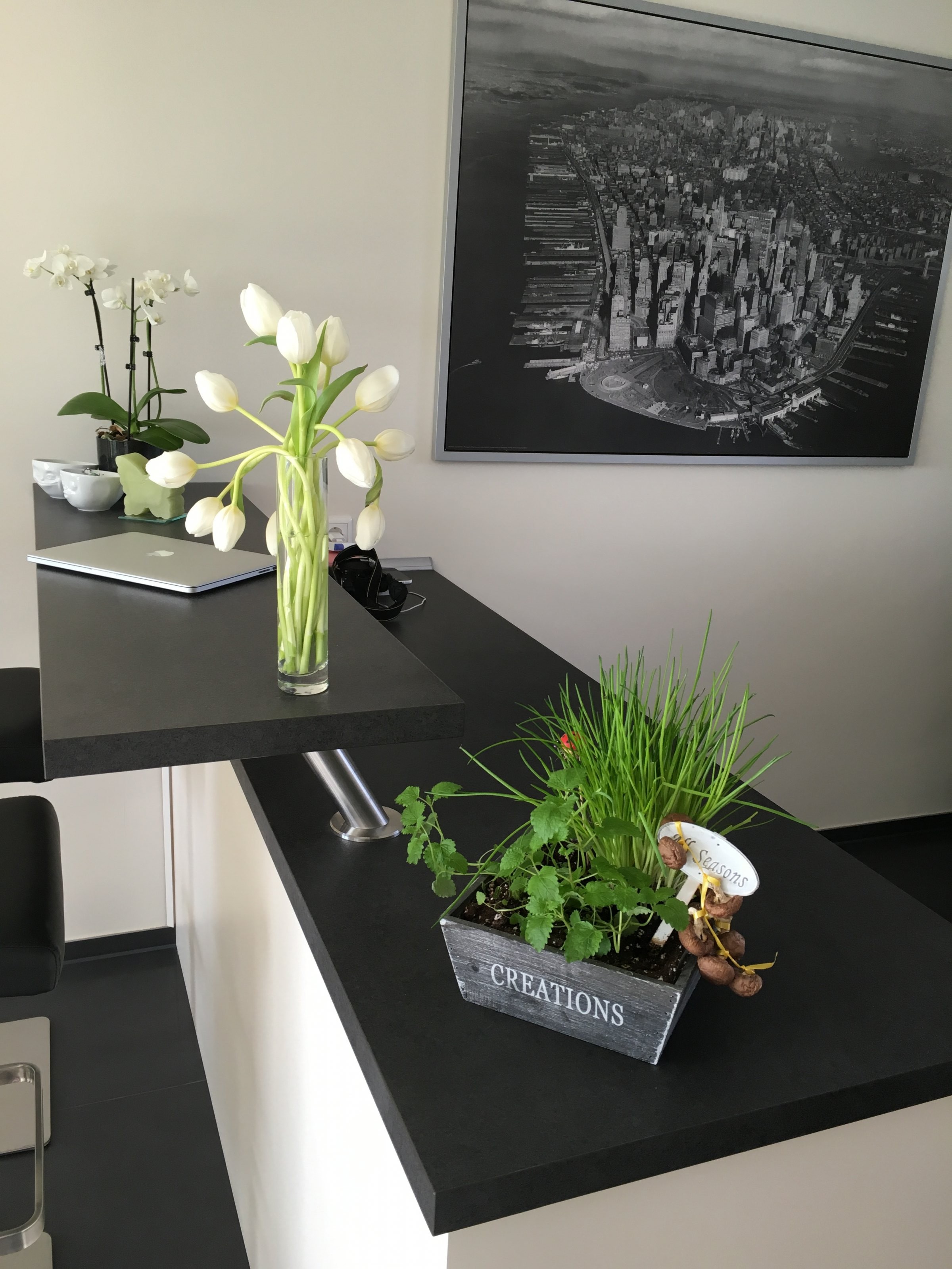 Die Küche war ursprünglich ein kleiner Raum, in dem wir eine Wand rausgerissen haben, damit ein offener Wohnbereich entsteht und die Tür haben wir zugemauert um die Küchenmöbel besser stellen zu können.