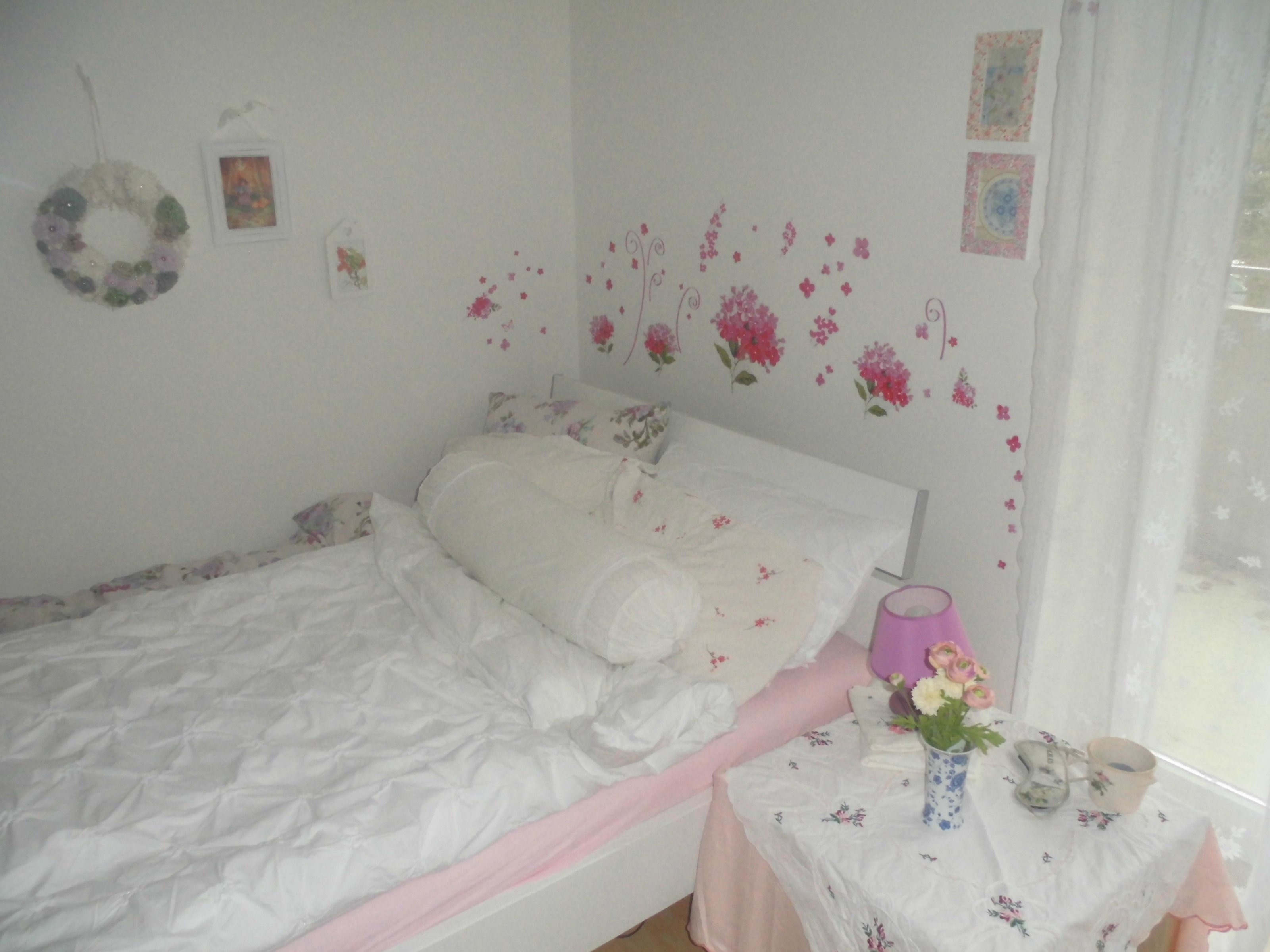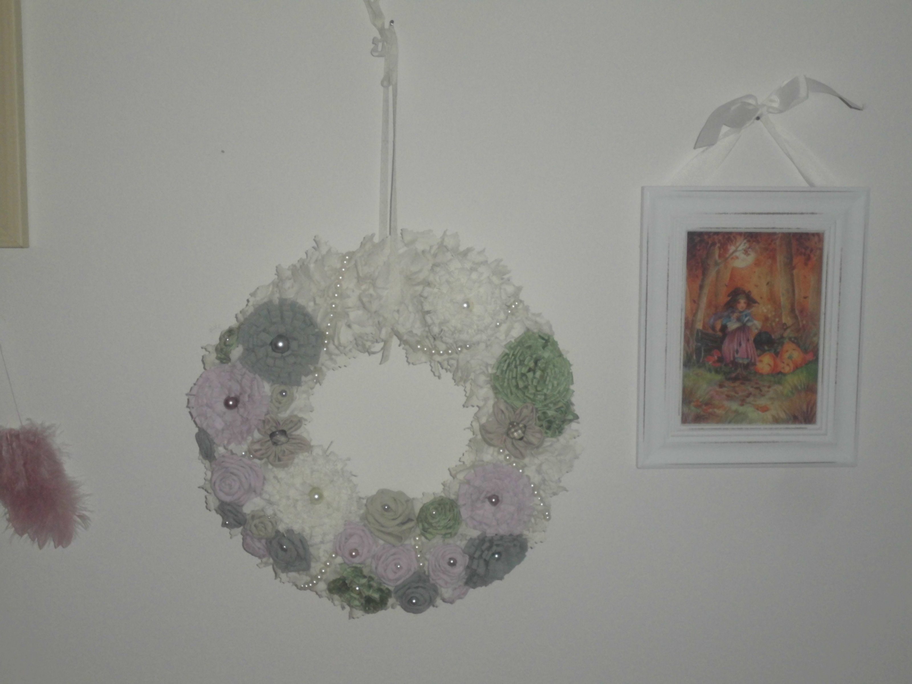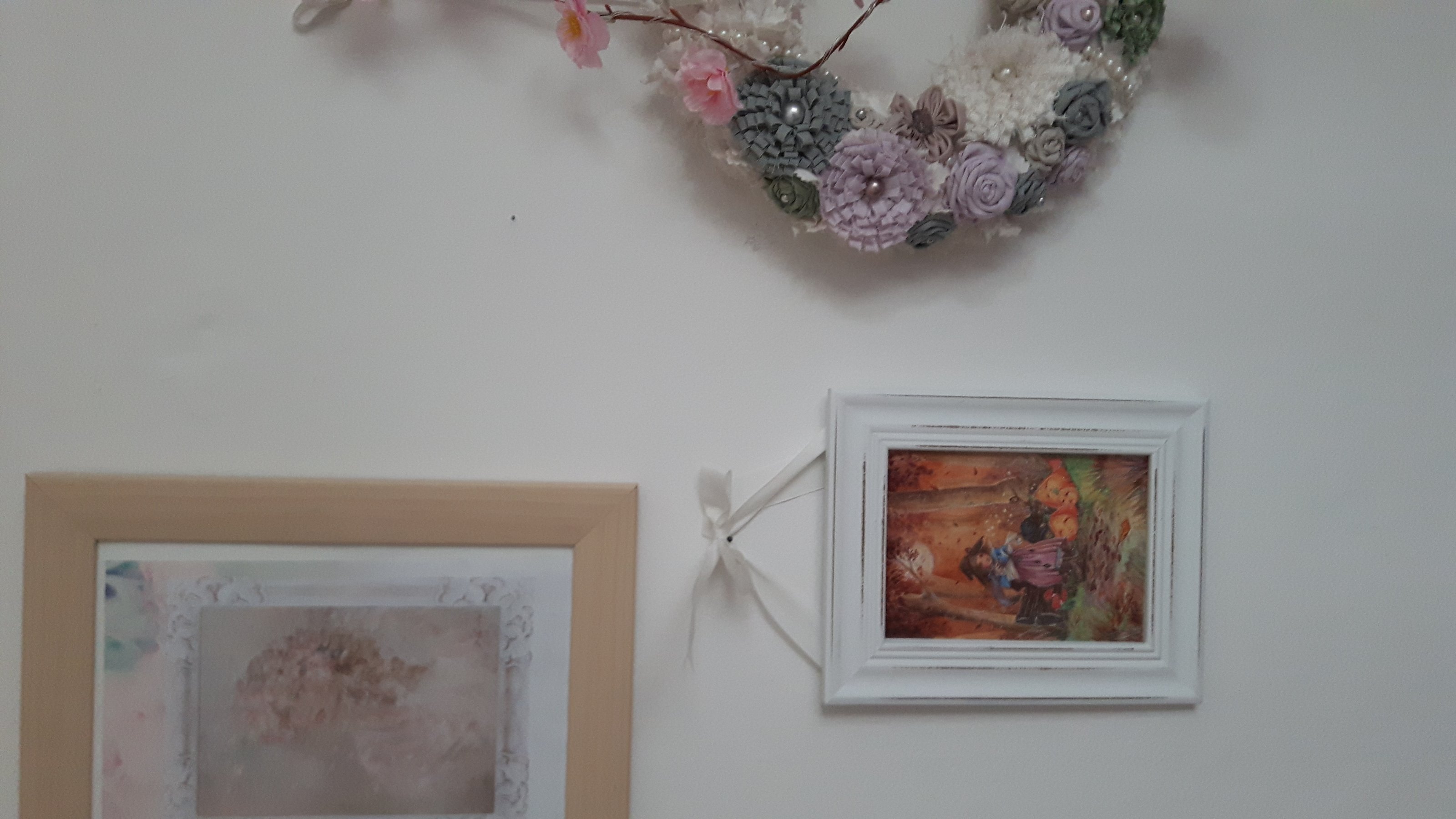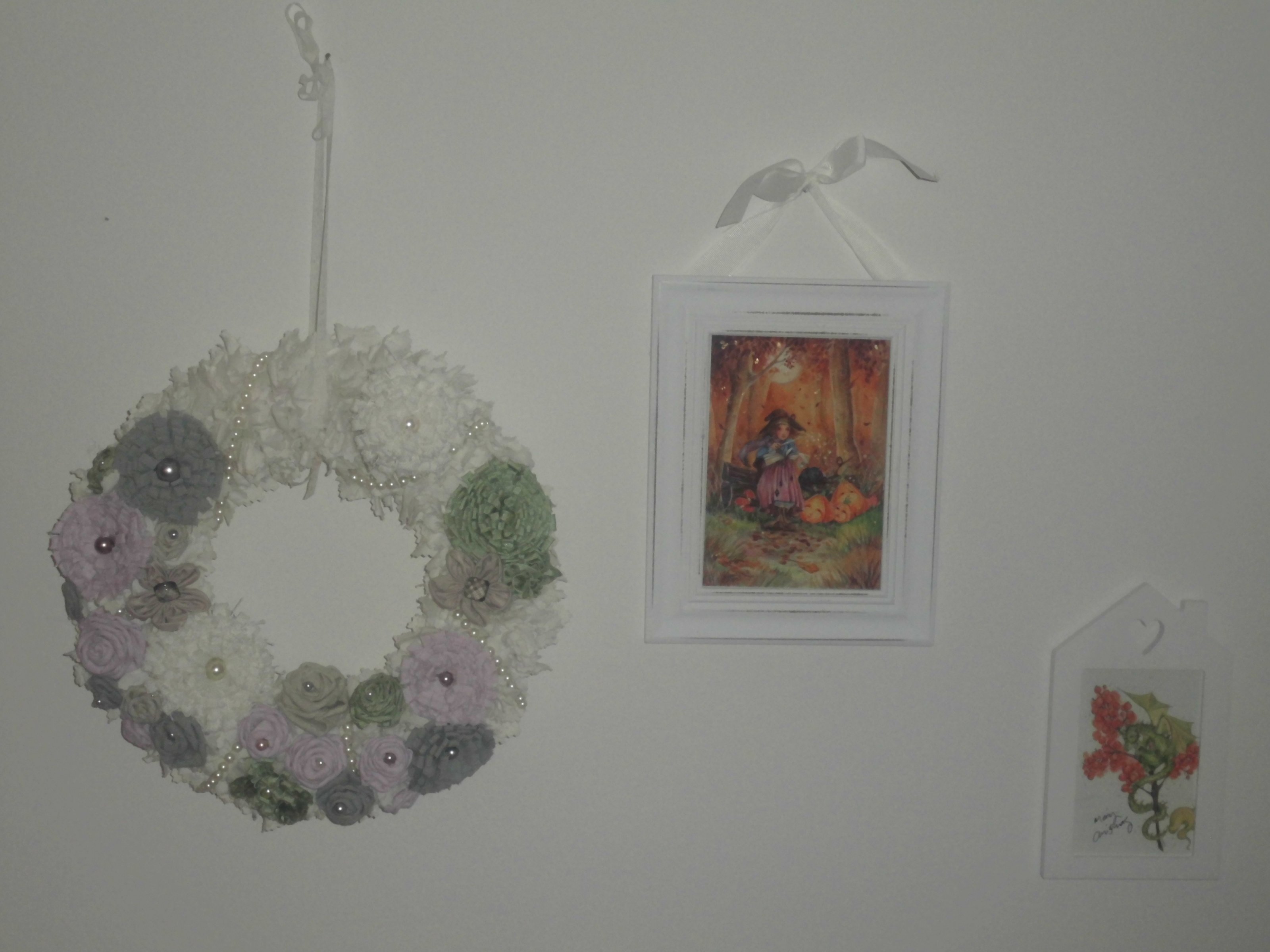 Nun hab ich in der Zwischenzeit ein paar Bilder auf die eine Seite neben dem Bett gehängt ...und noch diesen wunderschönen Shabby Chic Kranz