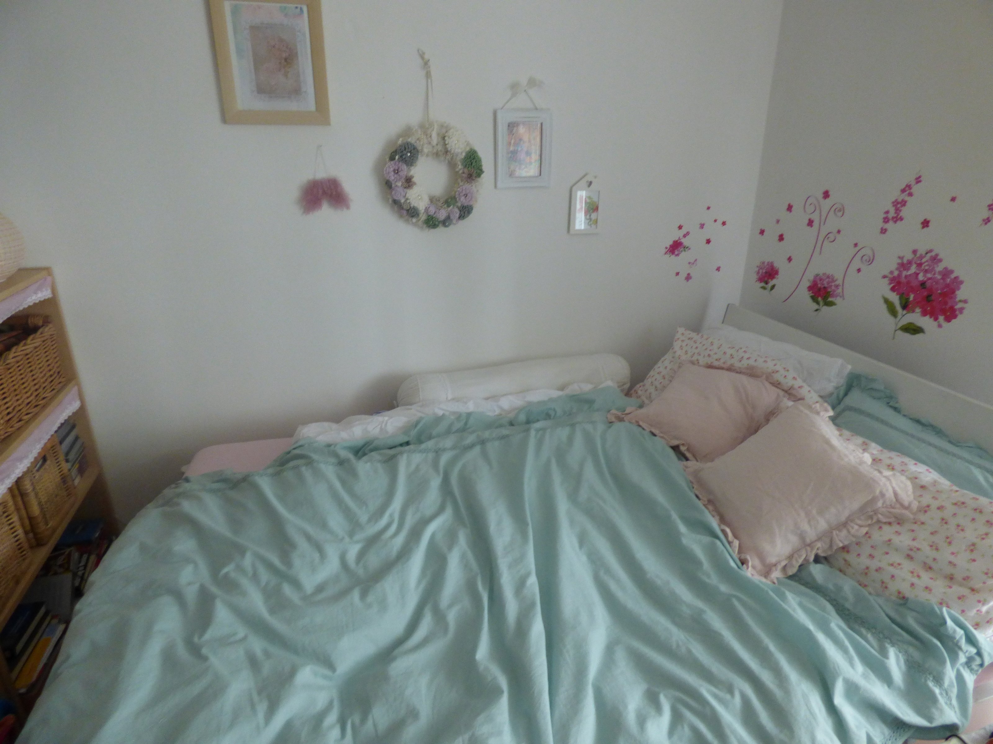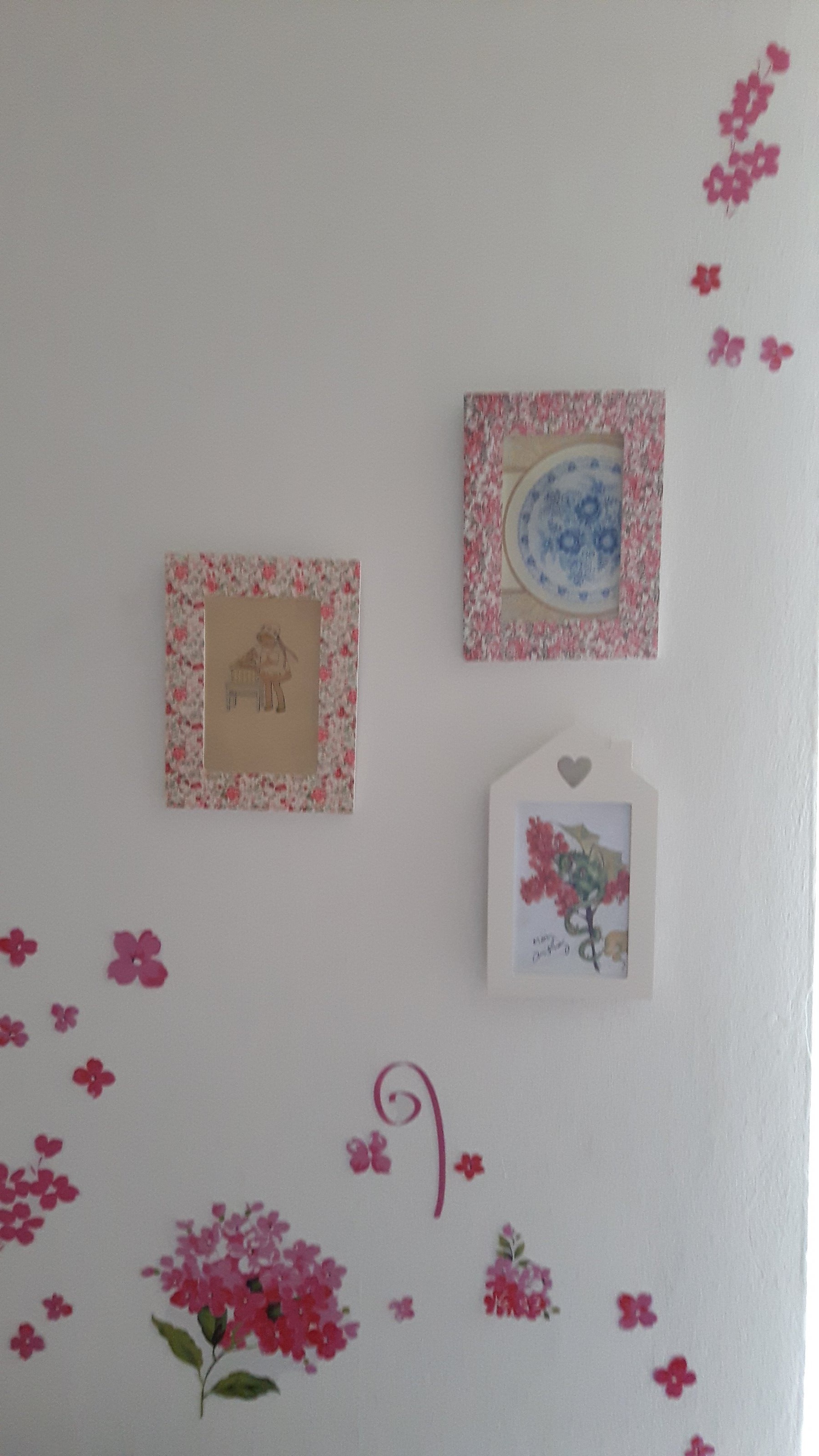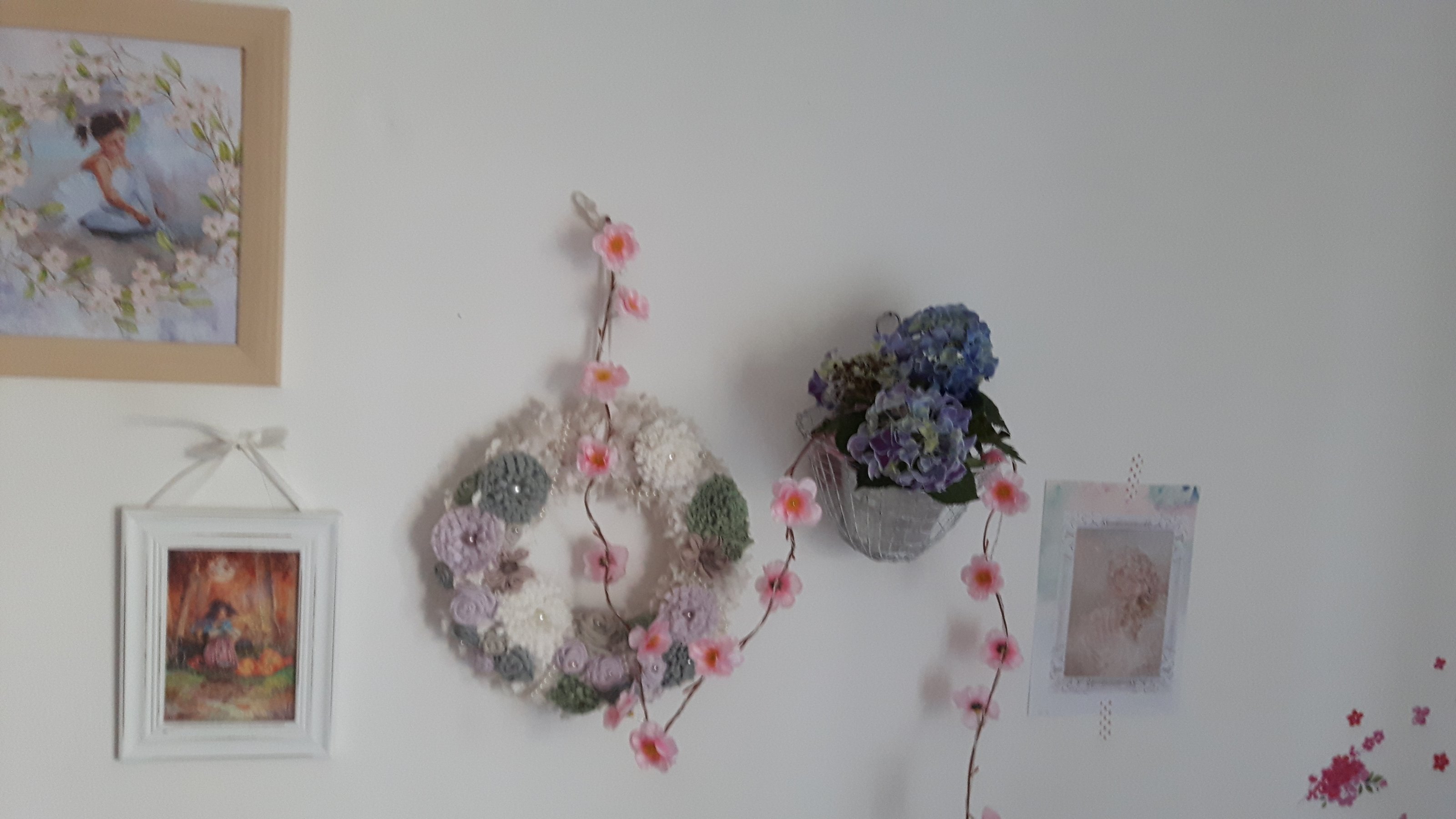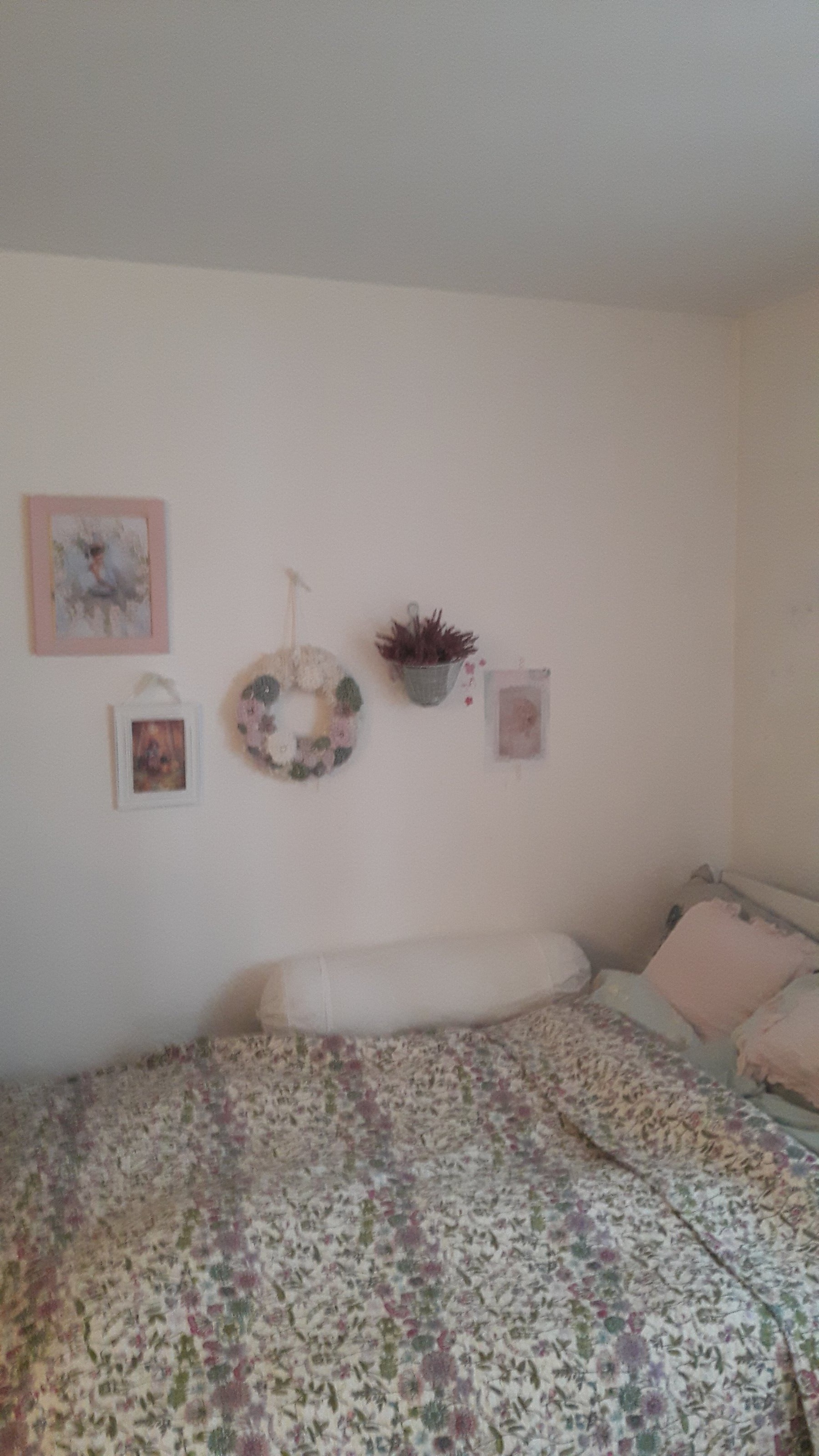 Nun hab ich in der Zwischenzeit ein paar Bilder auf die eine Seite neben dem Bett gehängt ...und noch diesen wunderschönen Shabby Chic Kranz