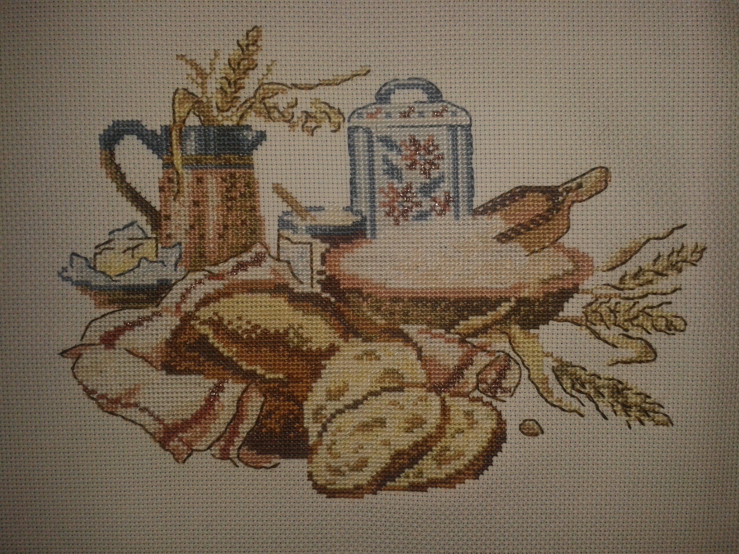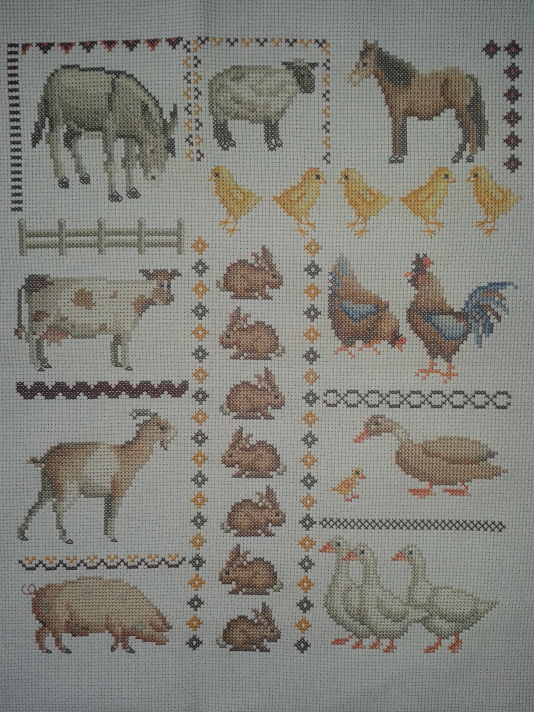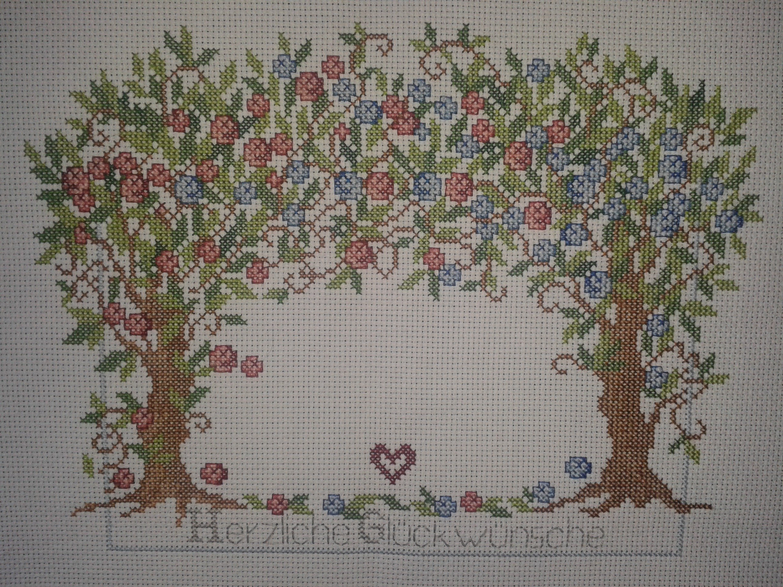 Das war mein erstes...eigentlich wollte ich mir nur eine Türschleife sticken und dann konnte ich nicht mehr aufhören...die Stoffe waren alle *naggisch*..also zählen,zählen,zählen....