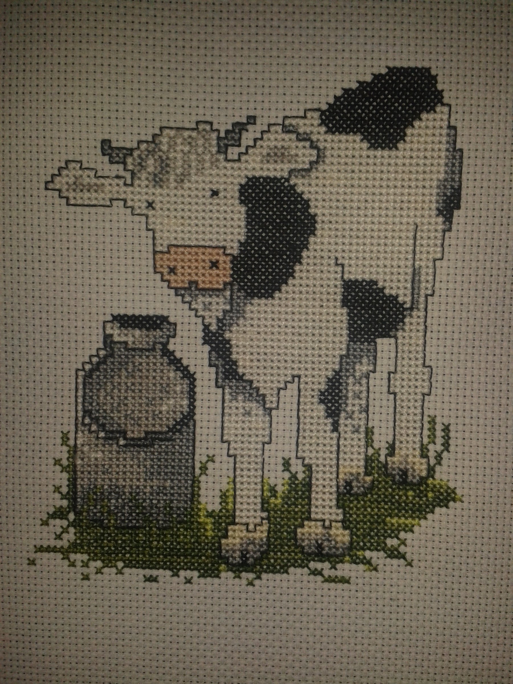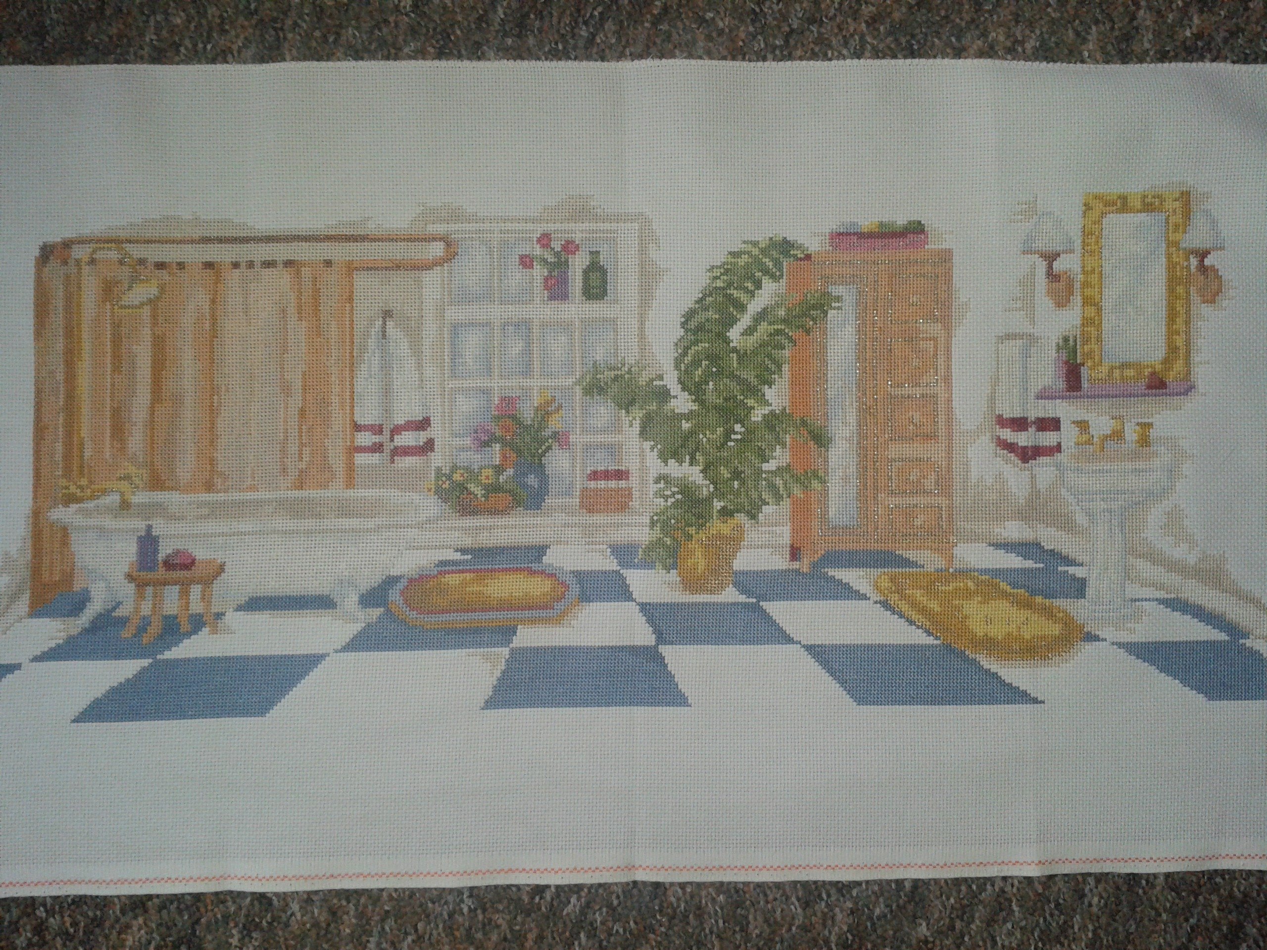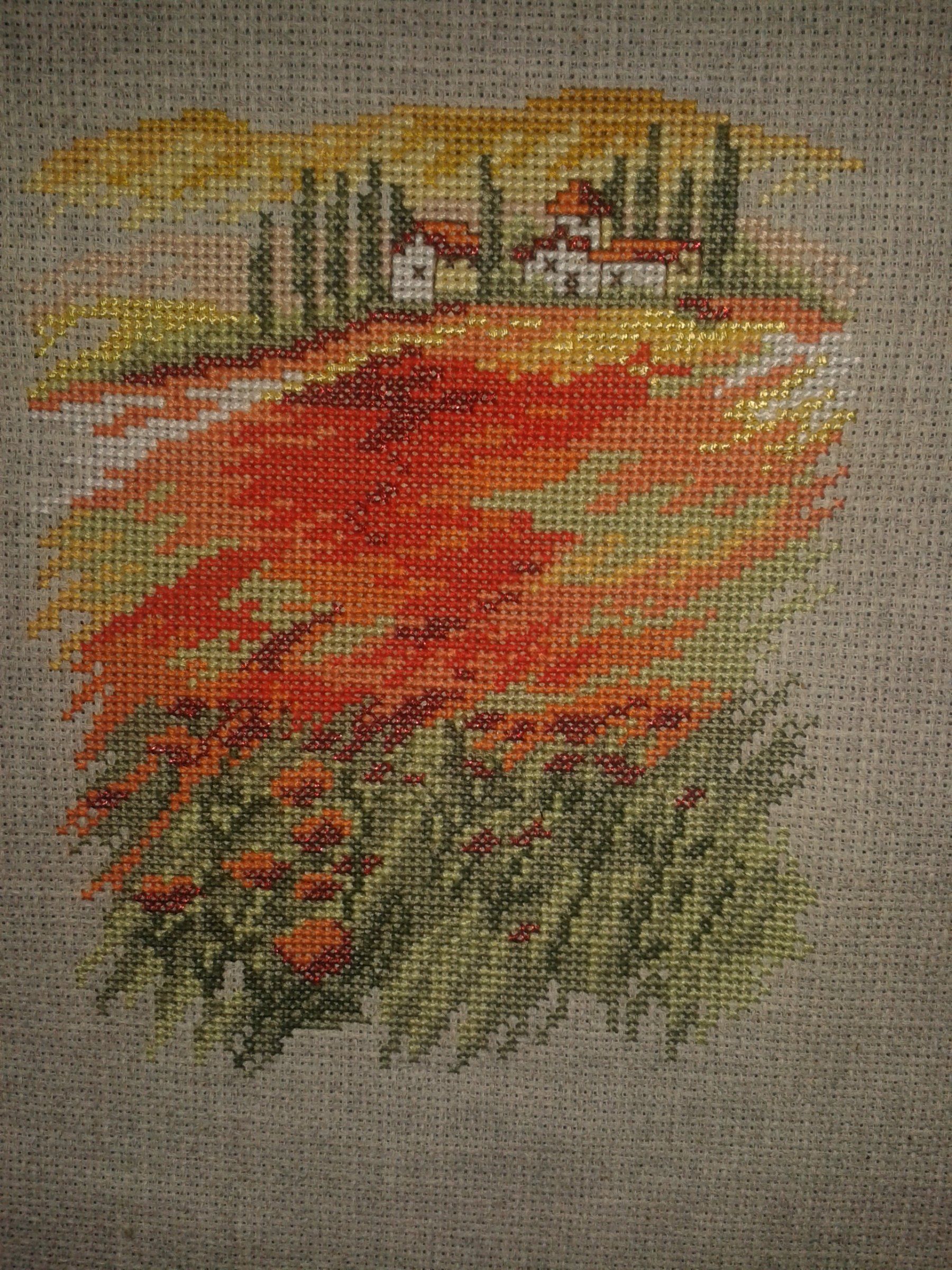 Das war mein erstes...eigentlich wollte ich mir nur eine Türschleife sticken und dann konnte ich nicht mehr aufhören...die Stoffe waren alle *naggisch*..also zählen,zählen,zählen....