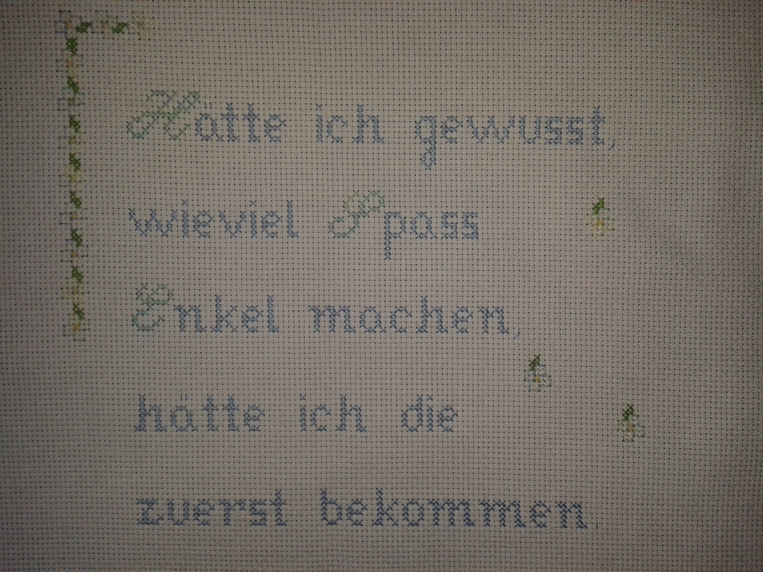 7.823Handarbeit habe ich schon immer gerne gemacht..es entspannt so schön...ich hatte immer bedauert,dass ich nicht sticken konnte...dann konnte ich es..und war nicht mehr zu stoppen...