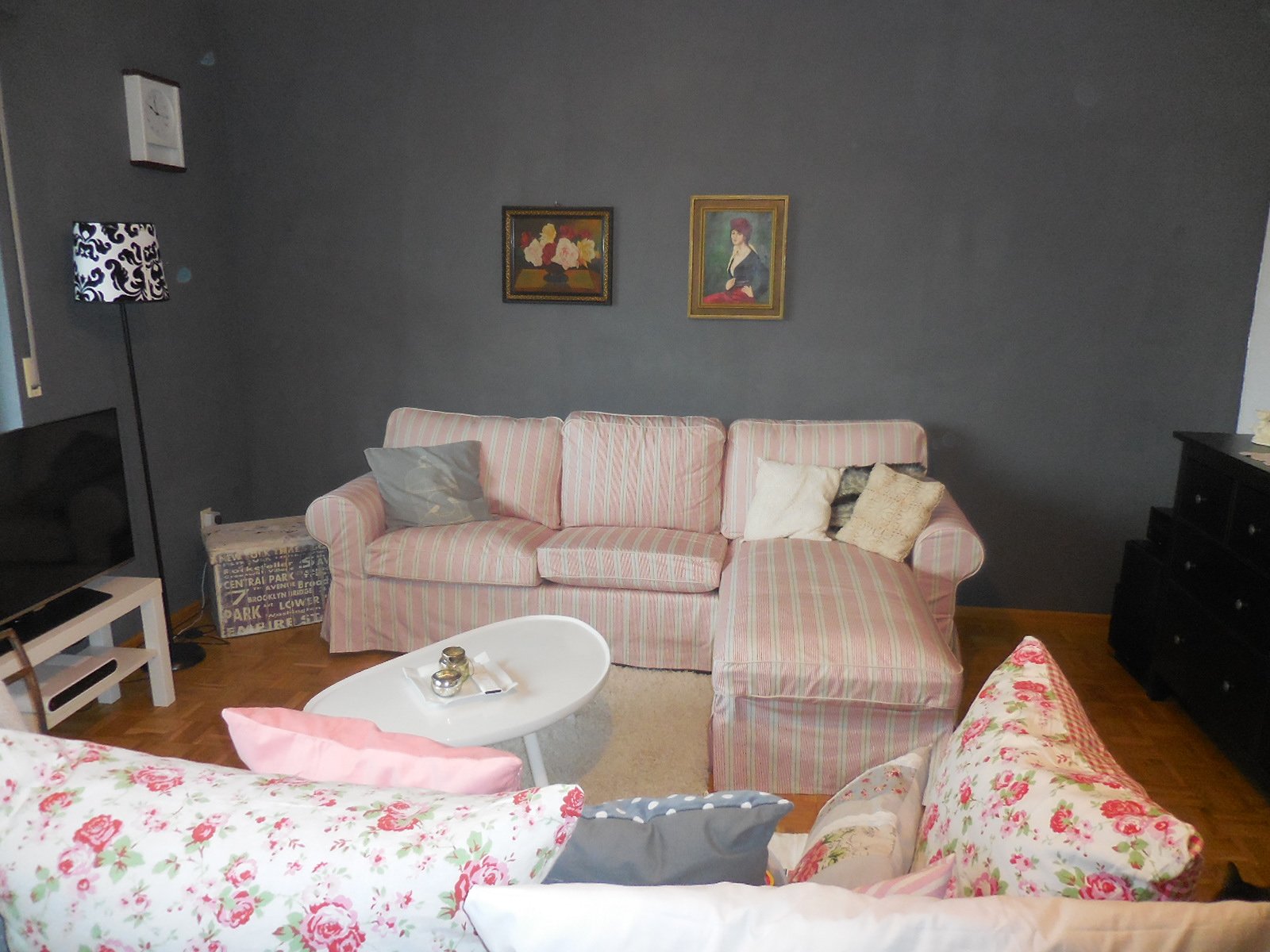 shabby chic im Wohnzimmer , Wände in graphit und weißer Kontrast