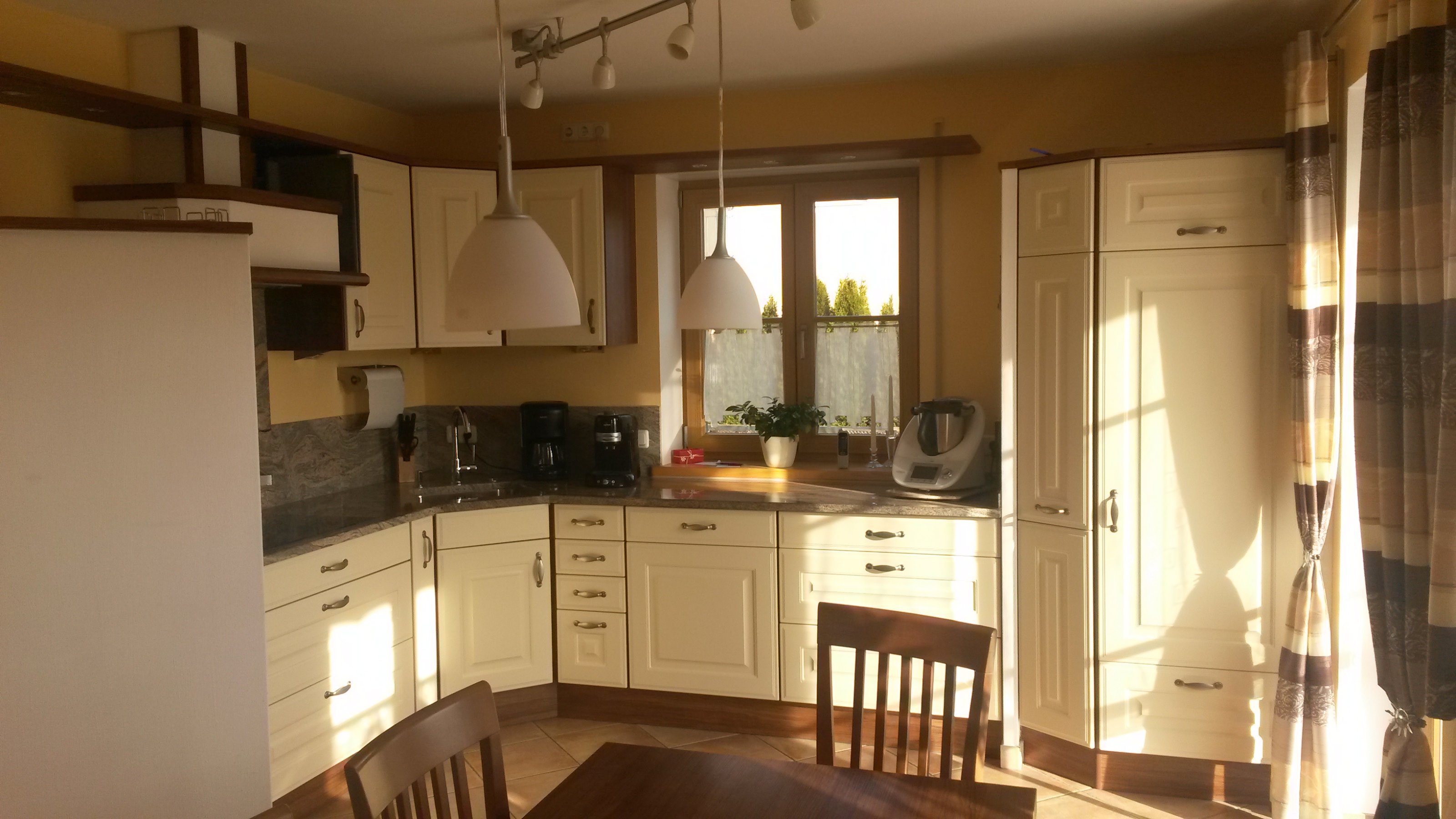Wohnküche im ländlichen Stil. Nur deko und vorhänge bin ich noch nicht zufrieden was würdet ihr mir empfehlen