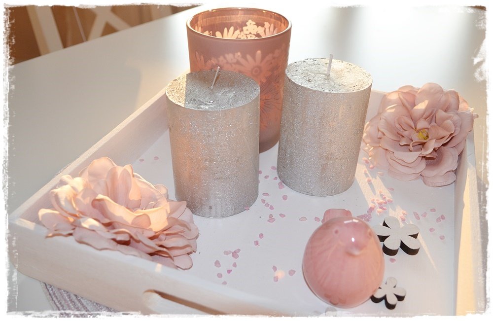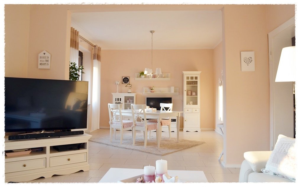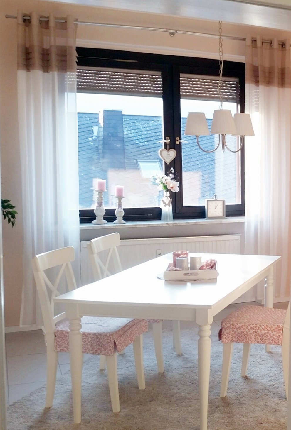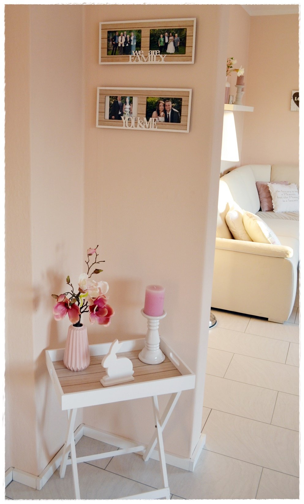 ich möchte Euch gerne unser Wohn,- Esszimmer nach dem großen Umbau zeigen. Meine Liebe zum Landhausstil habe ich behalten. Wir haben die Wand zwischen Wohn,- und Esszimmer raus geschlagen, damit aus 2 kleineren Zimmer ein Großes entsteht. Meinen großen Traum von weißen Fliesen haben wir uns zum Teil erfüllt. Wir haben uns im gesamten 1. Stock für weißes Laminat in Fliesenoptik entschieden. In den weißen Landhausschrank habe ich mich sofort verliebt. Nach der winterlichen braun-beigen Deko mussten nun fröhliche, helle Farben her. Ein kleiner Rosatick zur Zeit lässt sich nicht leugnen. ;-) Ich hoffe, es gefällt Euch ein bisschen. Liebe Grüße