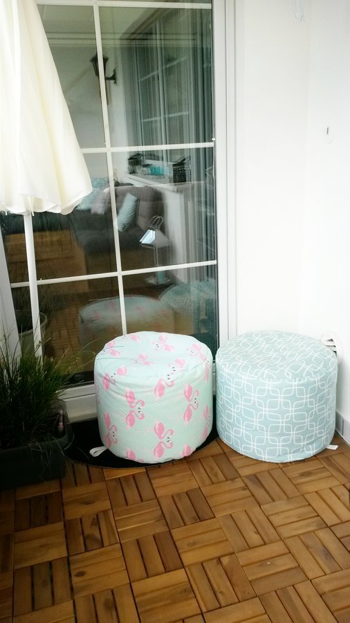 da ich die Tischläufer und Kissen vom Depot so schön fand, ich diese Stoffe aber eher in anderer Form haben wollte, entstanden so die Poufs :-)