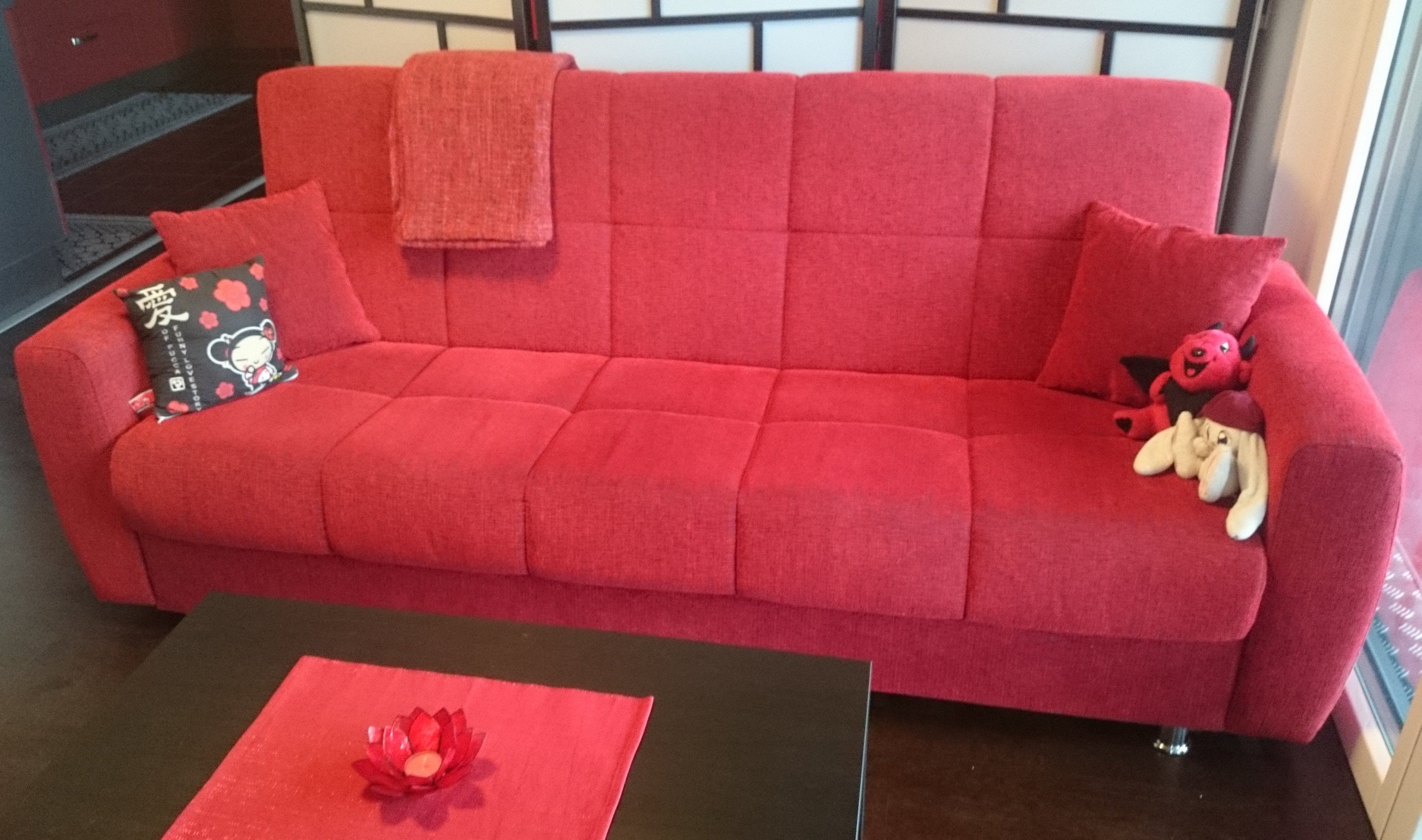 Das Sofa war ein richtiger Glückstreffer, er passt super zum Konzept und der Bezug ist auch für die Katzen toll, da man die allgegenwärtigen Haare kaum sieht! ;-)